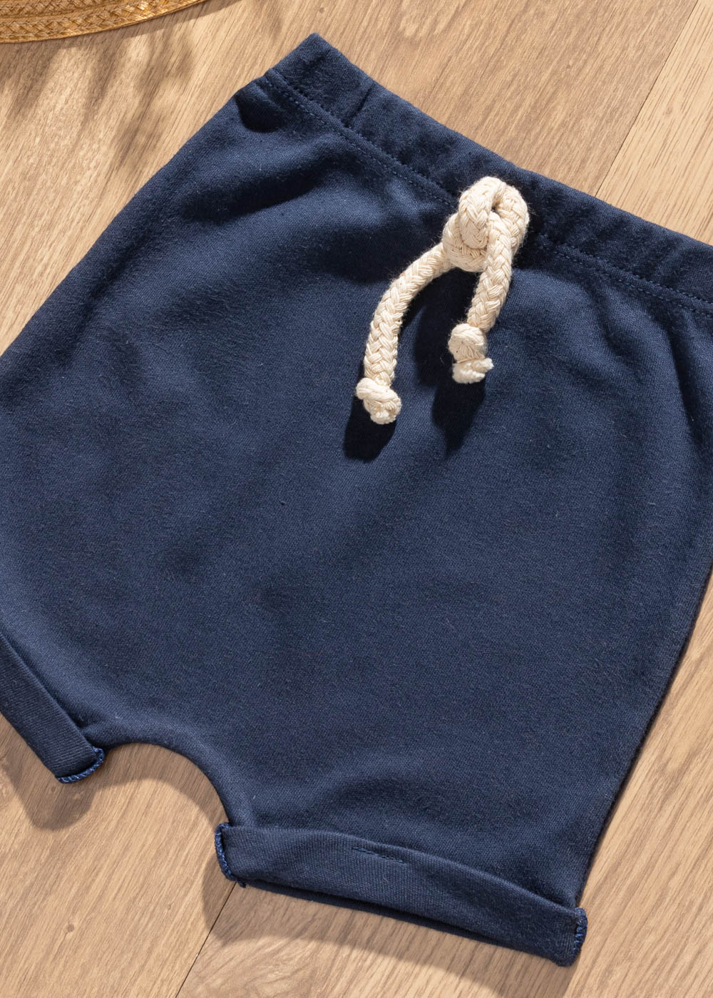 A Bermuda saruel Infantil Marinho é confeccionada em tecido molecotom, 100% Algodão, fresquinho, macio e muito confortável. Tem detalhe de cordão no cós e a barra é dobrada, deixando a peça ainda mais linda para compor Vários Looks.