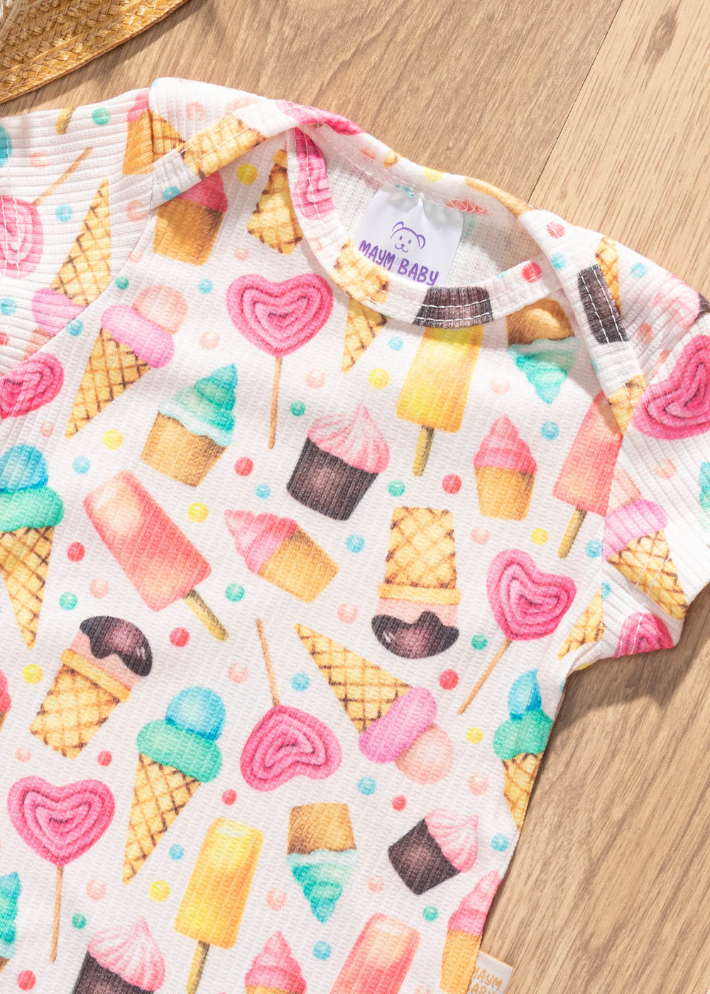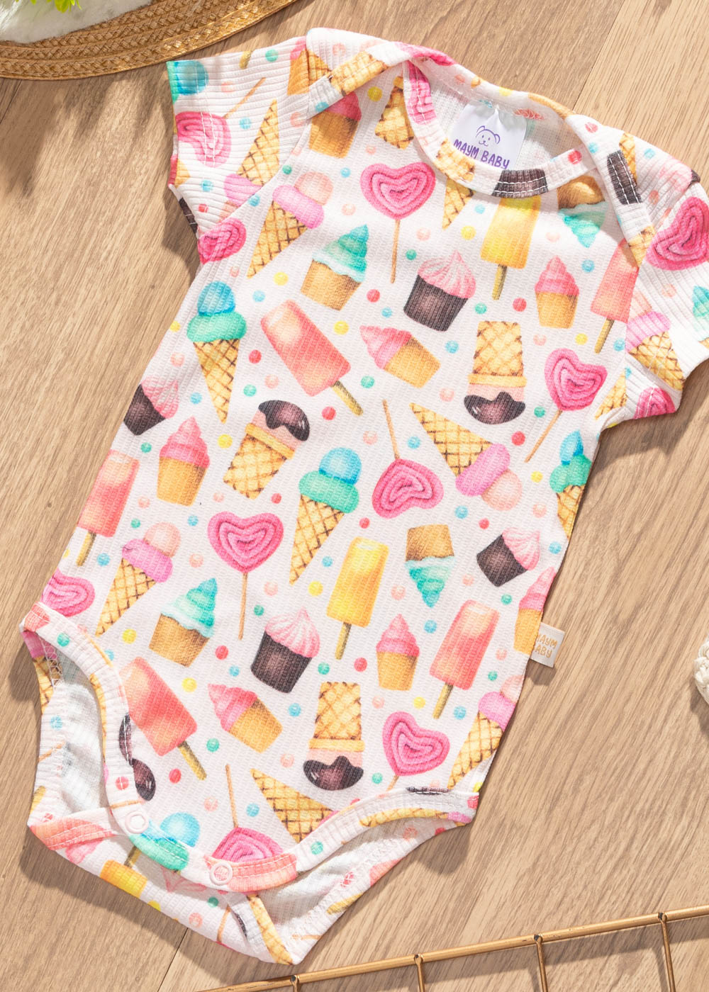 O Body Bebê Verão Estampa Sorvete, possui gola envelope que facilita na hora de vestir. Uma peça confortável e Linda para deixar sua baby com um look de arrasar, Perfeito para os dias mais quentes. A peça que as Mamães Amam, e que é indispensável no guarda roupas.