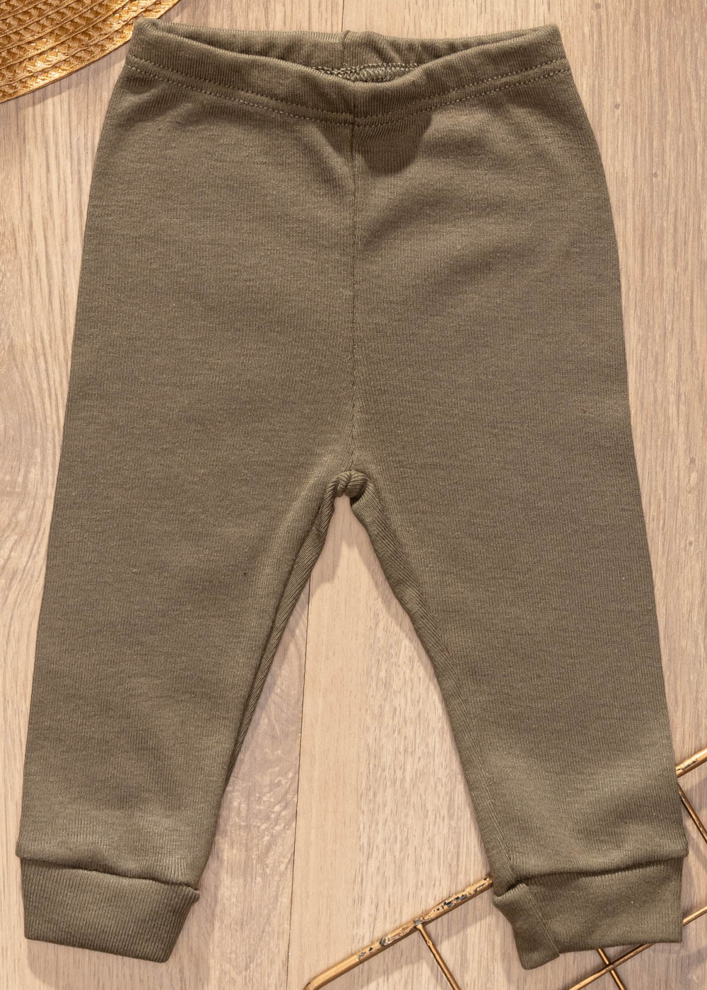 Calça Básica Verde Oliva é um tecido super leve e confortável, ideal para a pele do bebê.