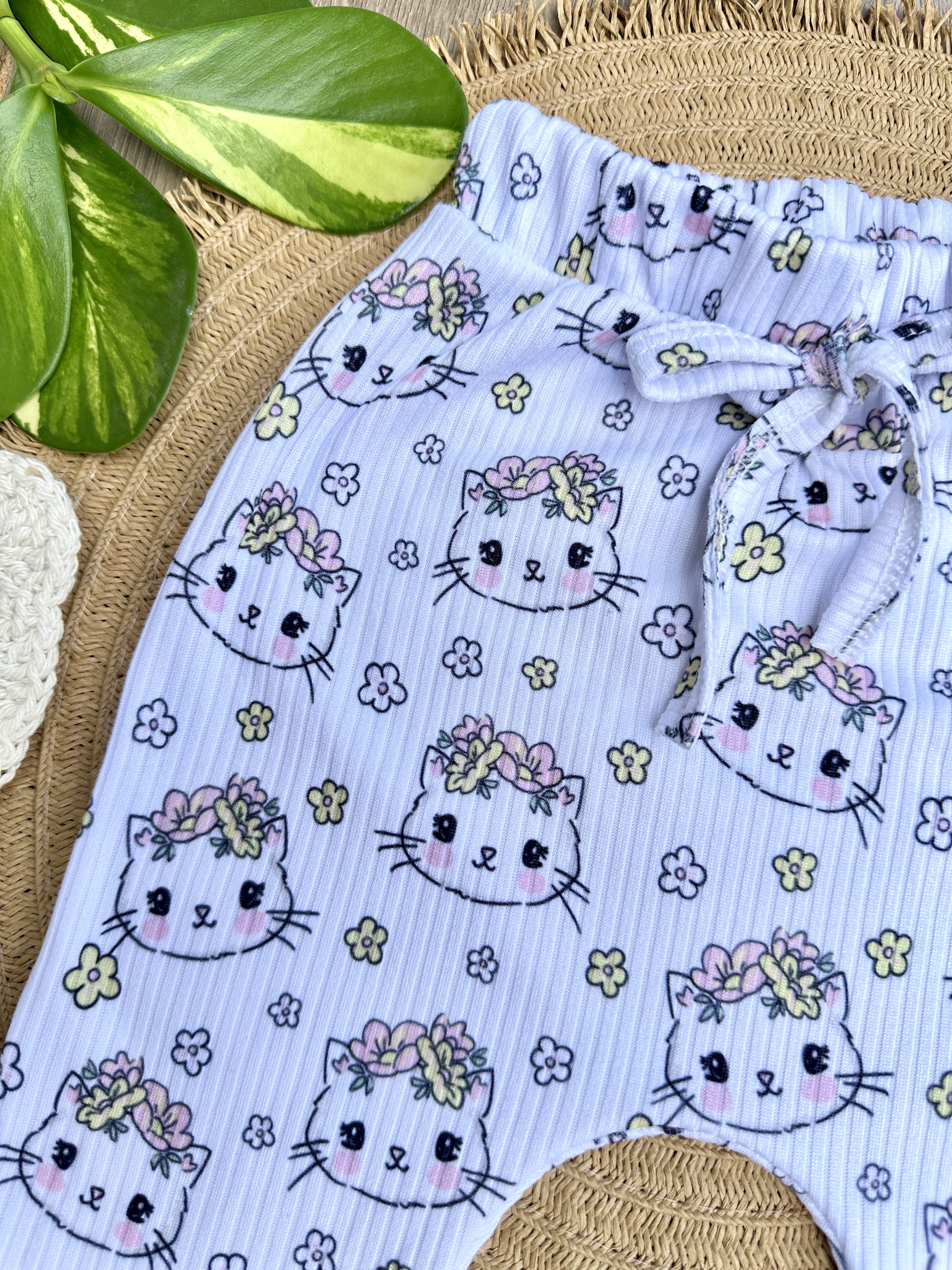 A Calça Infantil Canelada Estampa de Gatinhas é perfeita para usar no dia a dia, além de ser super confortável e linda, a calça saruel é super estilosa e possui cordão para dar um charme especial no look. Deixe seu Baby lindo e confortável com esse modelo.