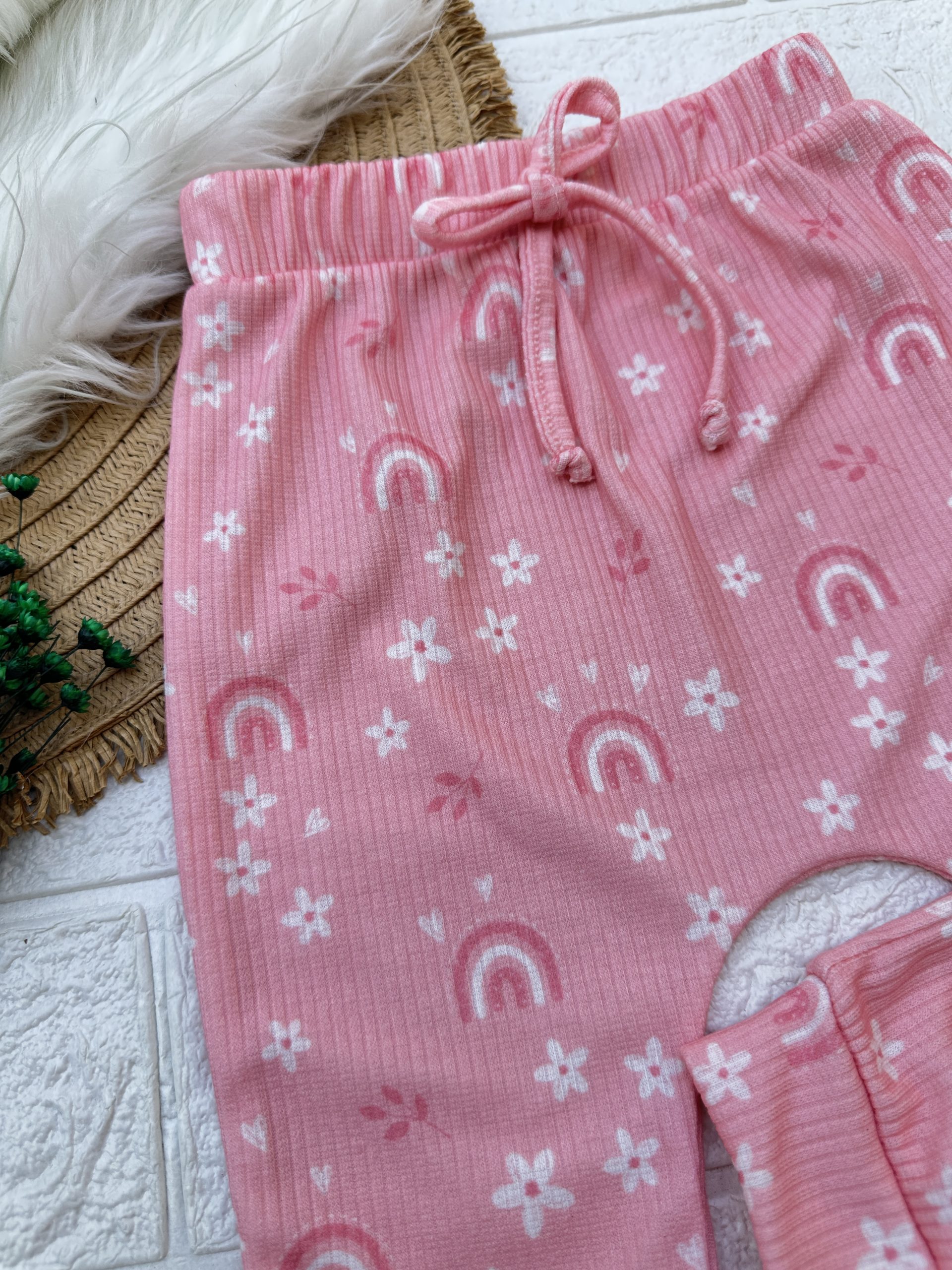 Calça saruel Infantil Estampa Arco-Íris Rosa