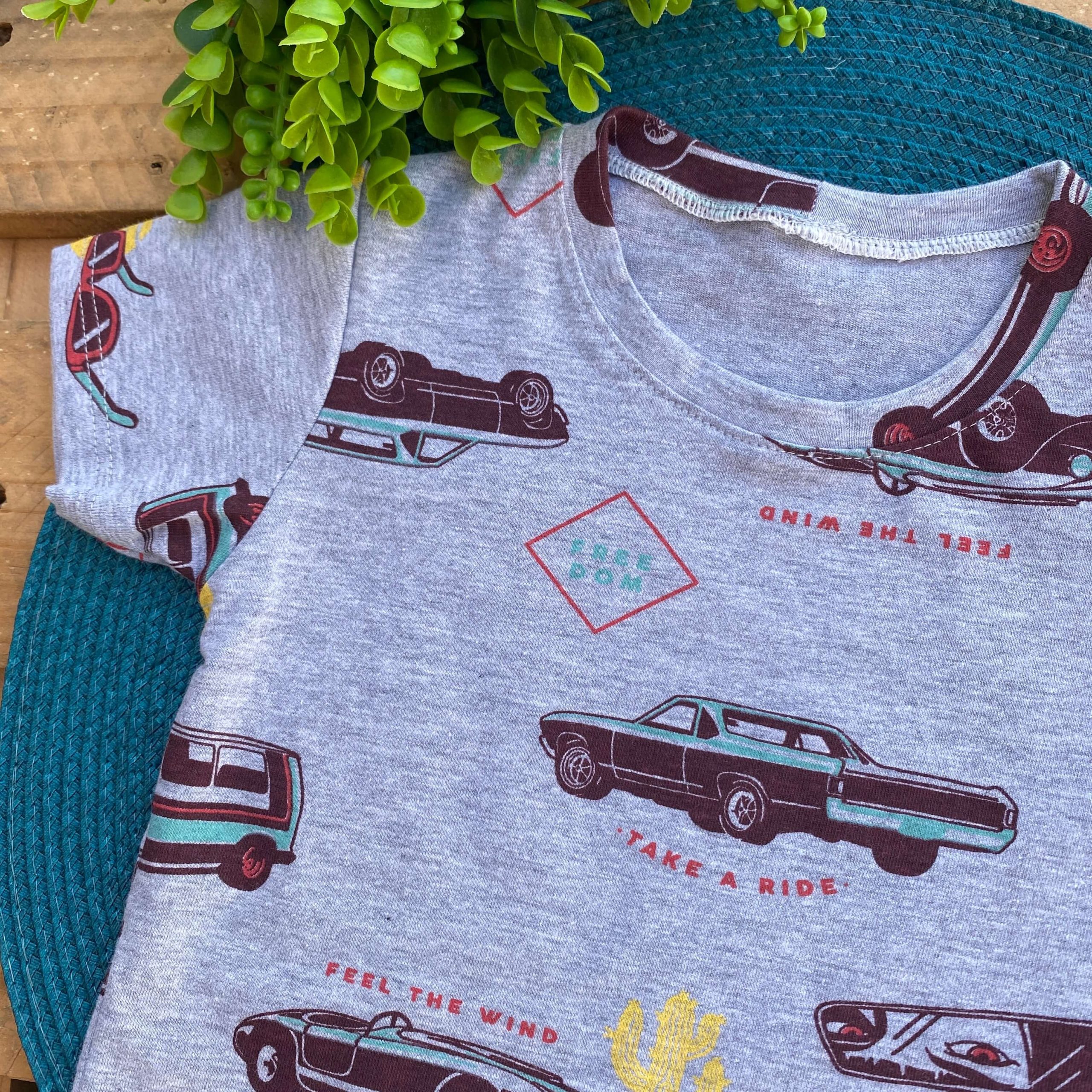 Camiseta Infantil em Malha Mescla Carros é confeccionada em malha 100% algodão, com um toque suave e confortável. Ideal para compor vários looks lindos e cheio de estilo. Com estampa de carros, é super charmosa para usar nos dias mais quentes.