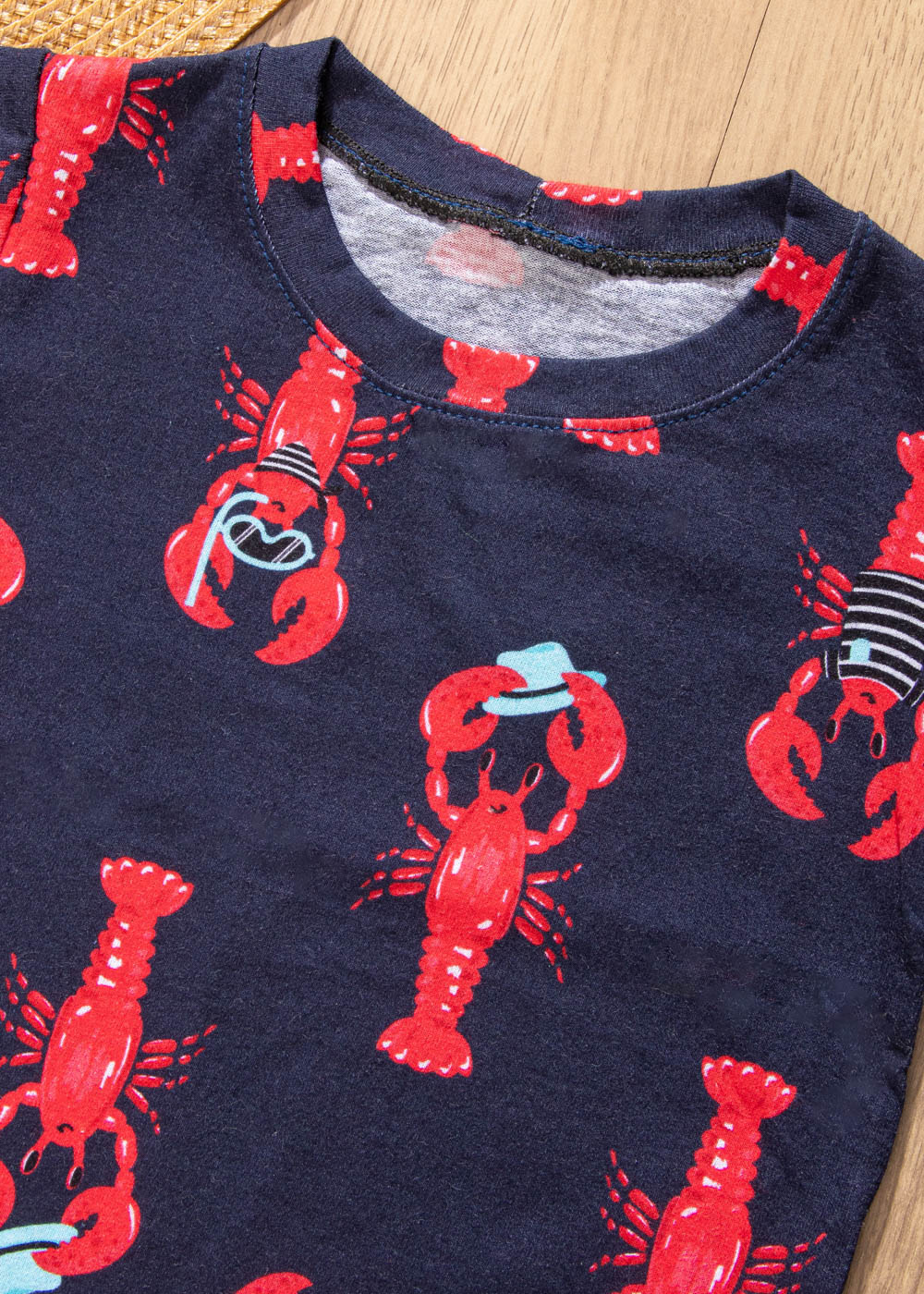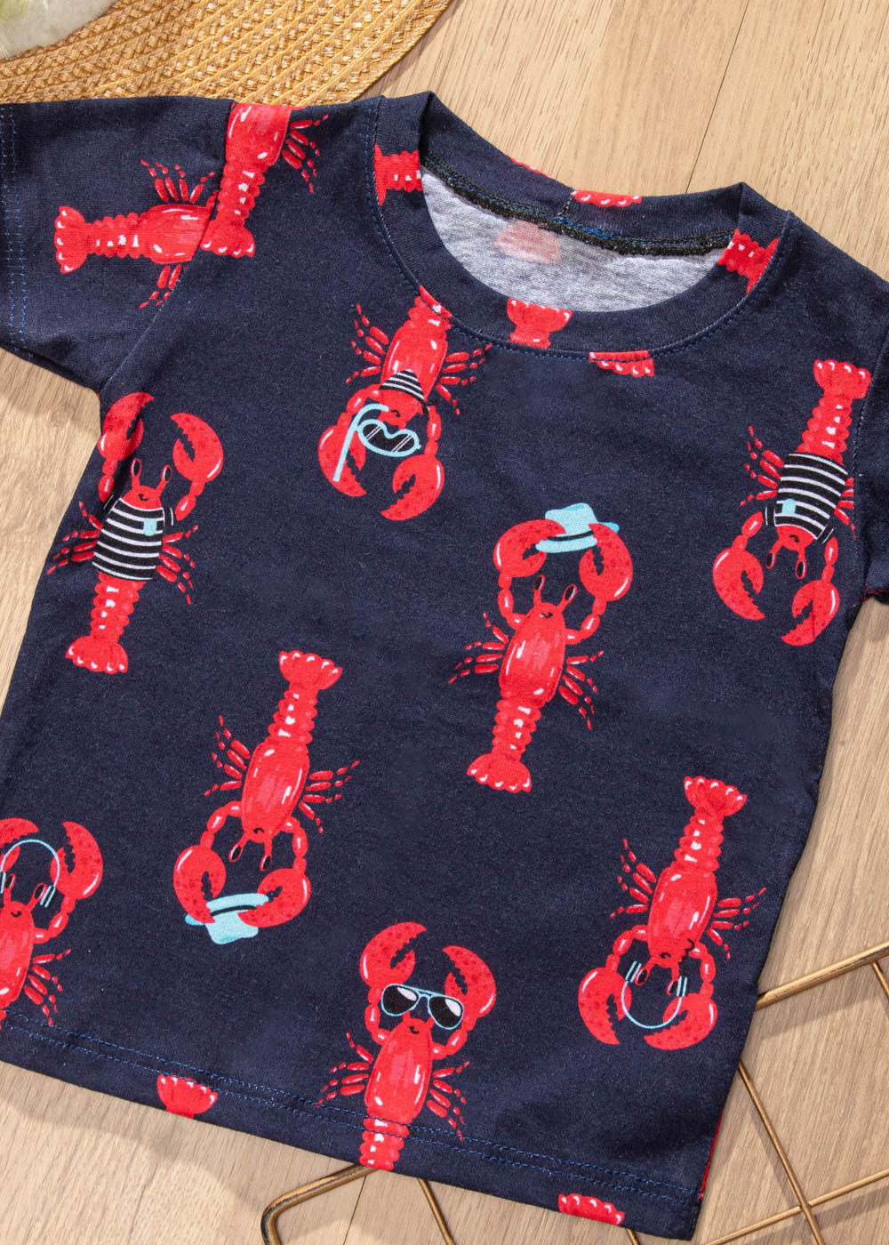 Camiseta Infantil em Malha Preta Lagosta é confeccionada em malha 100% algodão e com estampa digital, com um toque suave e confortável.
