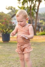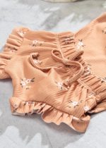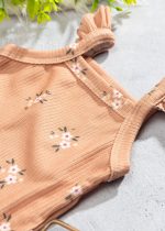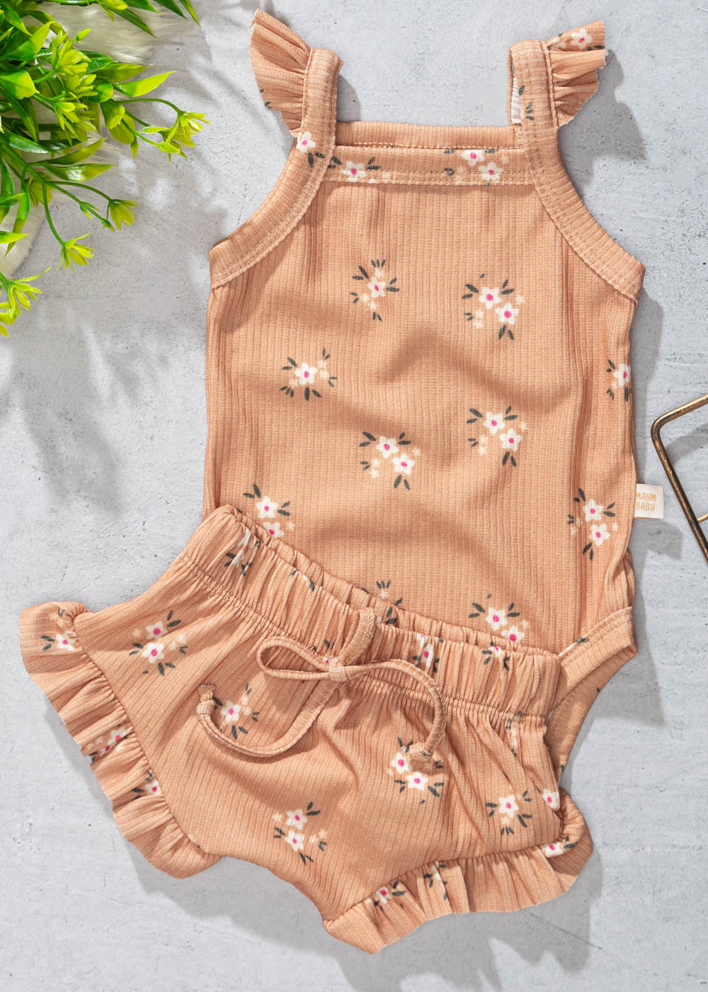 Conjunto Bebê Verão Body e Tapa Fralda Babado Flores Marrom