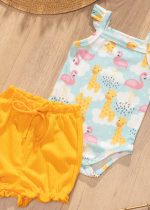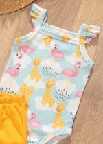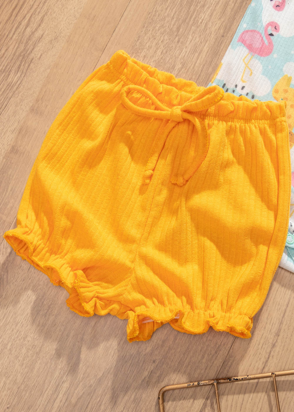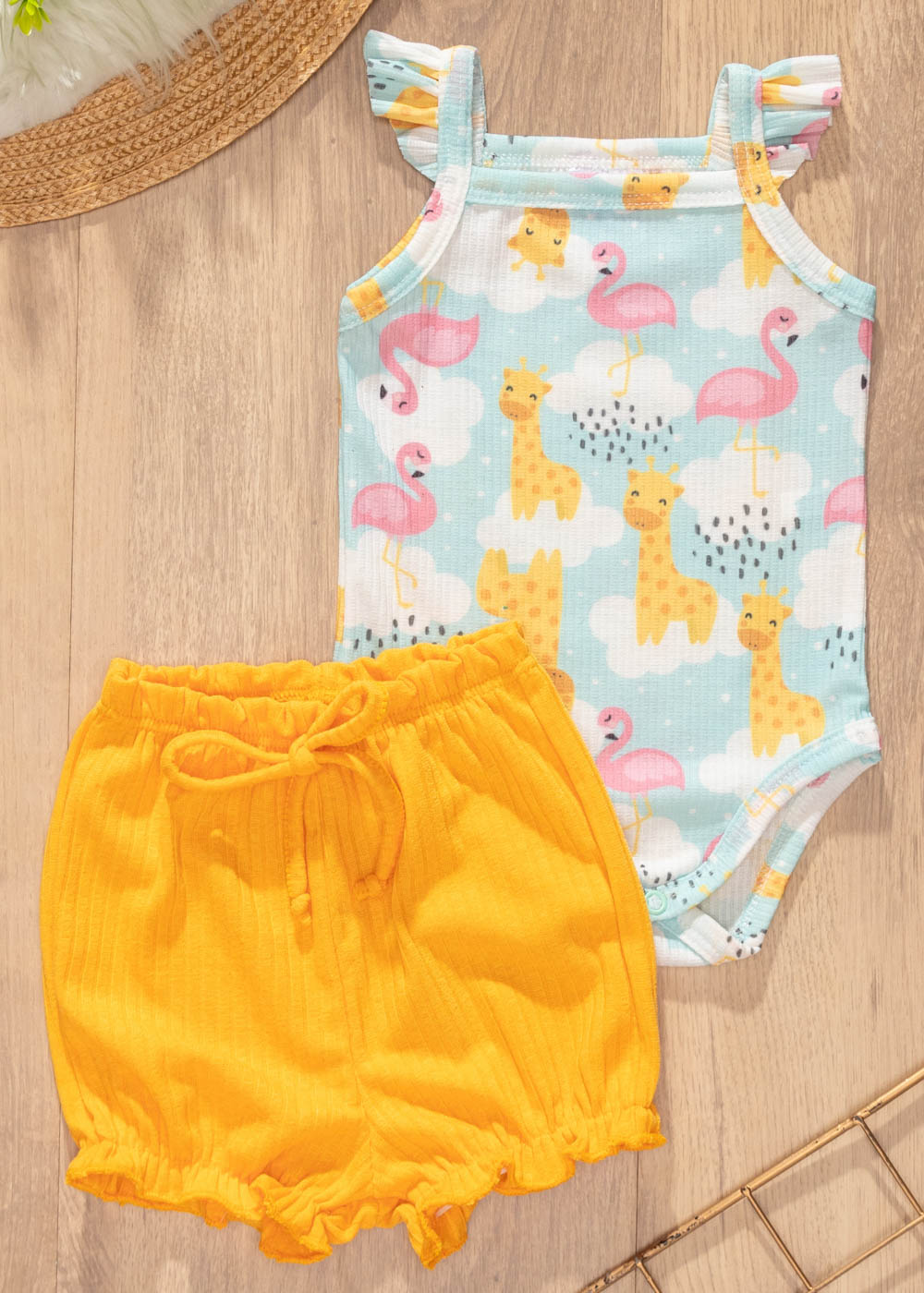 Conjunto Bebê Verão Body Flamingo Shorts Bombachinha Amarelo