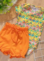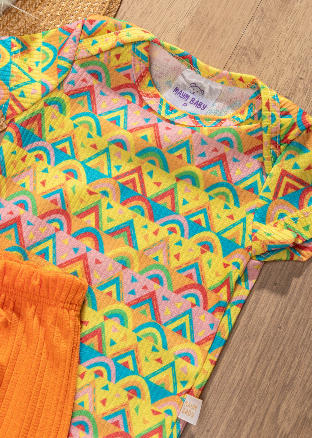 Conjunto Bebê Verão Body Geométrico e Bombachinha Laranja