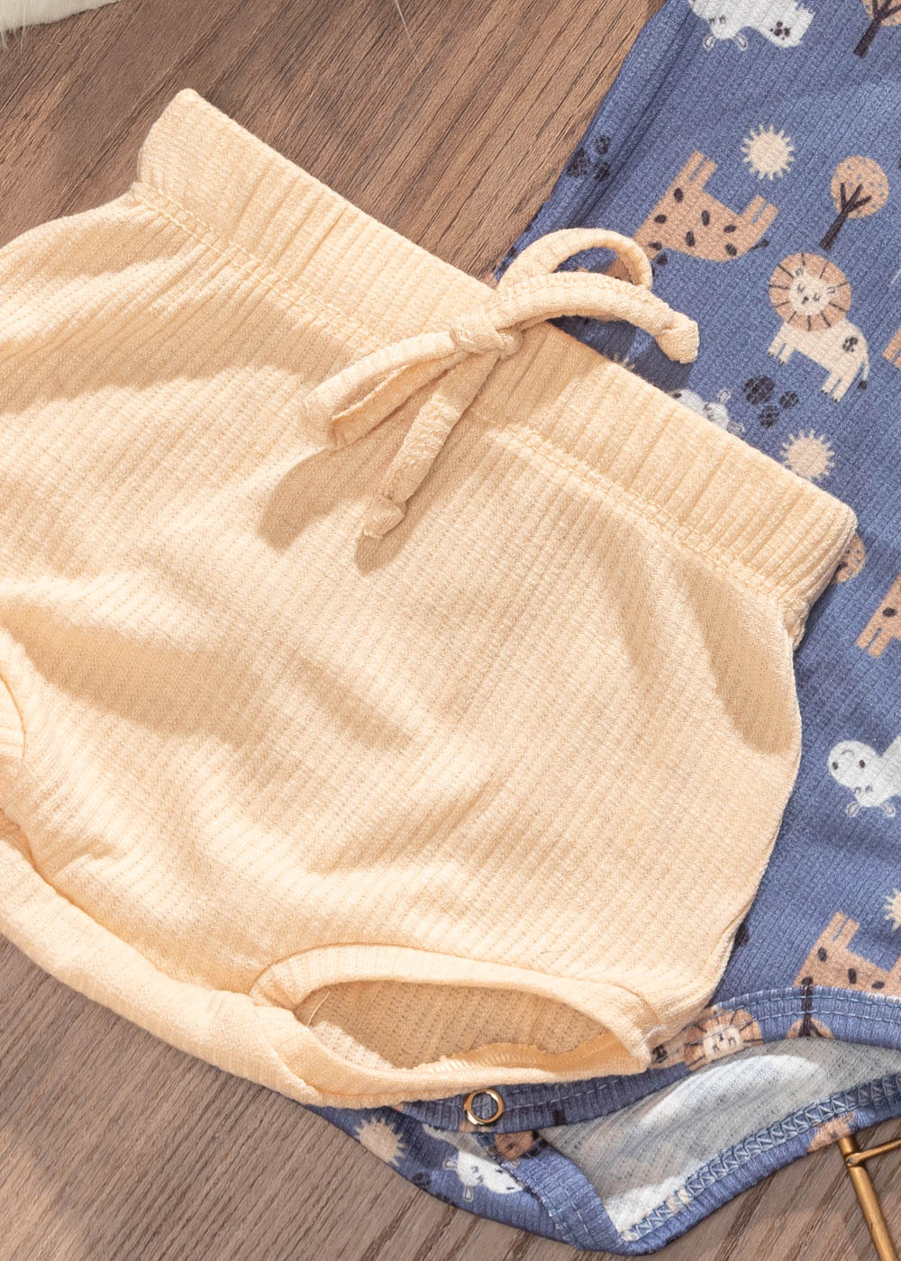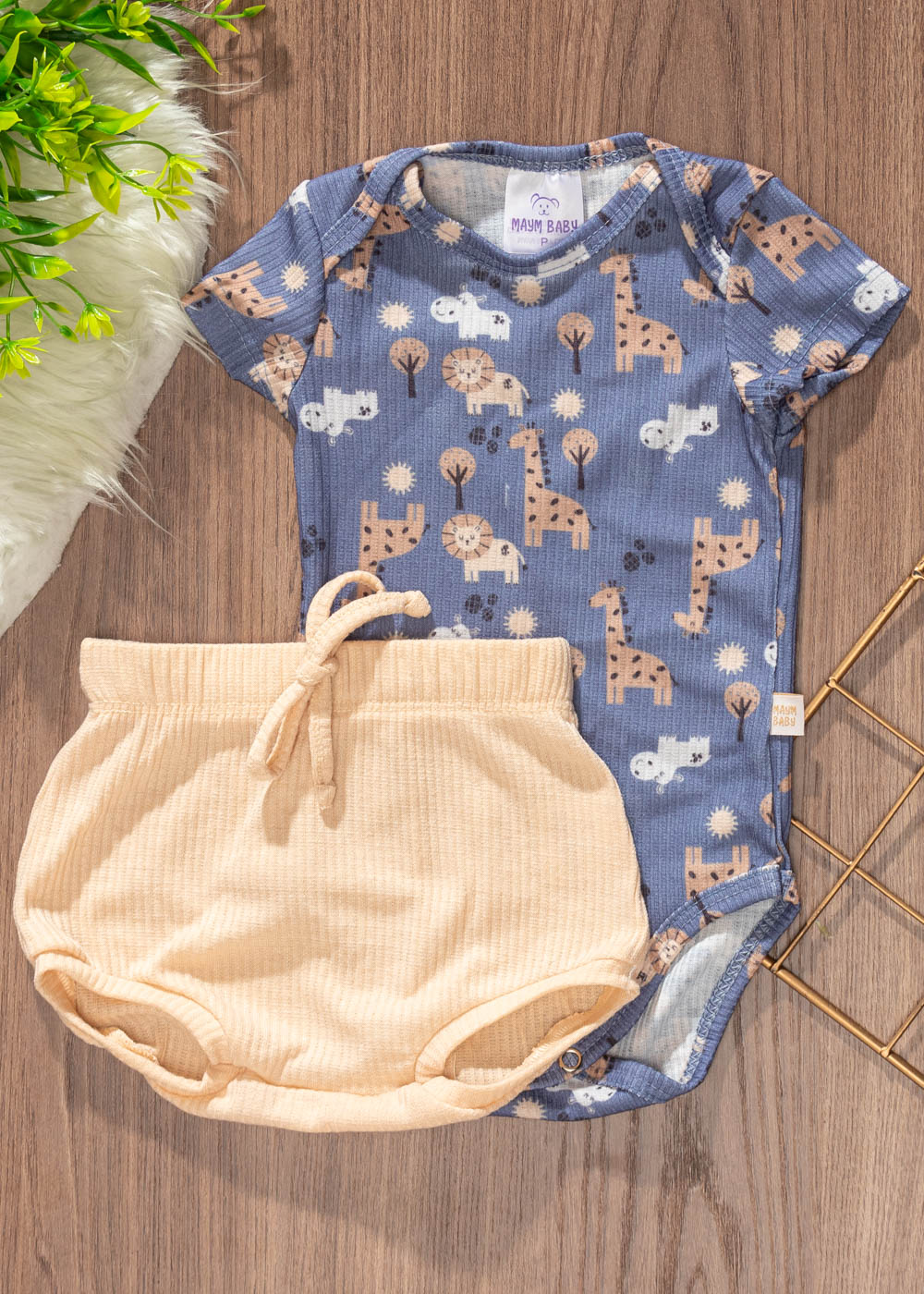 Conjunto Bebê Verão Body Gifara e Tapa Fralda Nude. O body é com estampa de girafa e possui gola envelope que facilita na hora de vestir e o short é na cor nude, possui elástico no cós e cordão falso. Um look confortável e lindo para seu baby.
