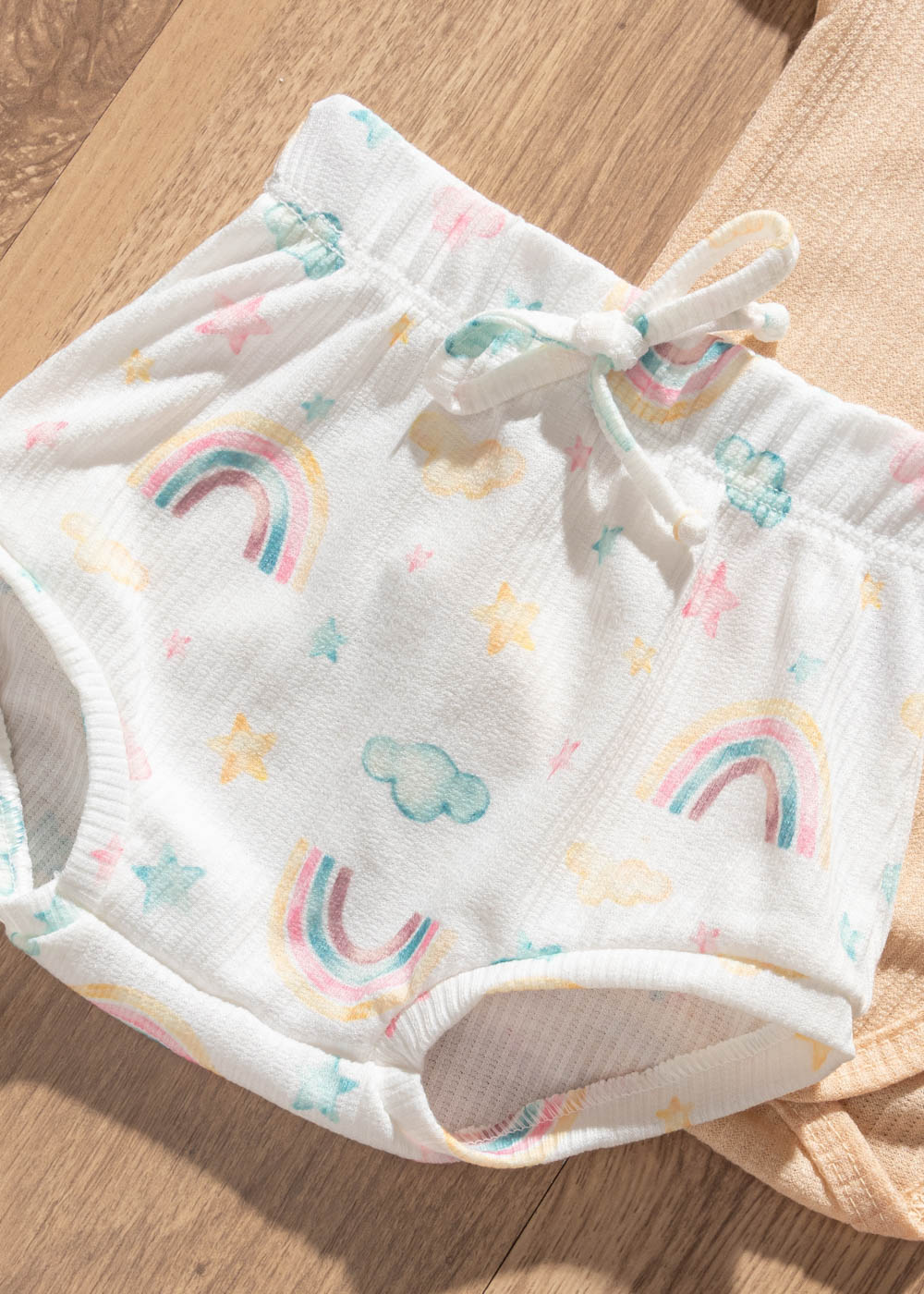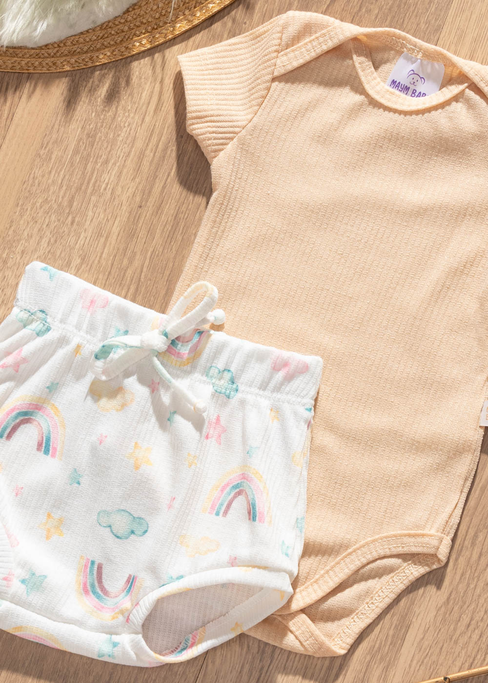 Conjunto Bebê Verão Body Nude e Tapa Fralda Arco-íris