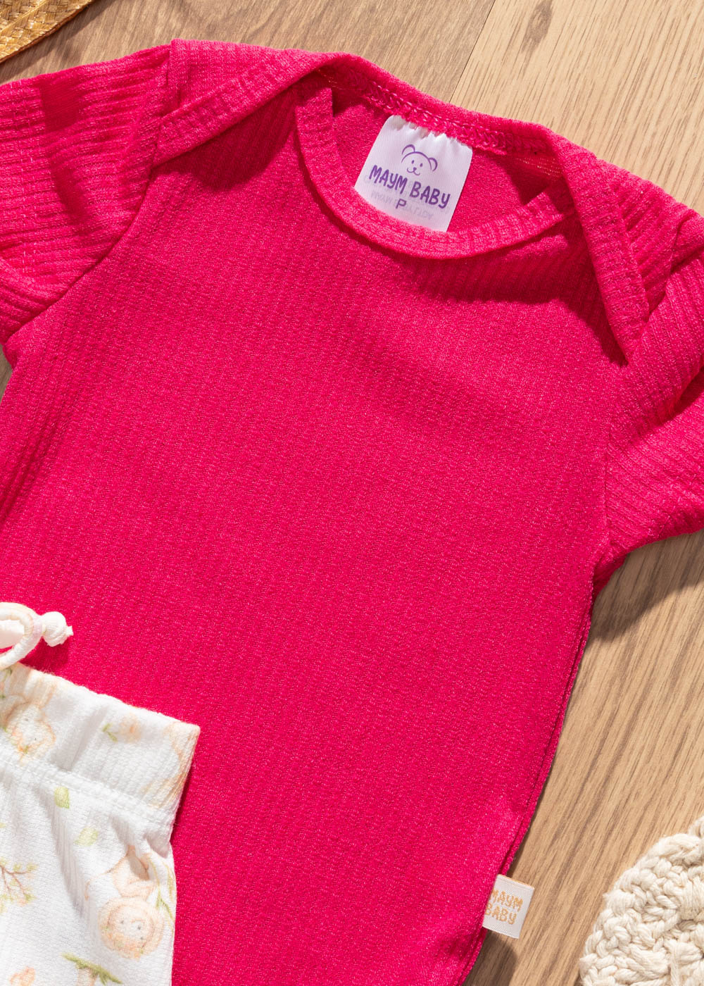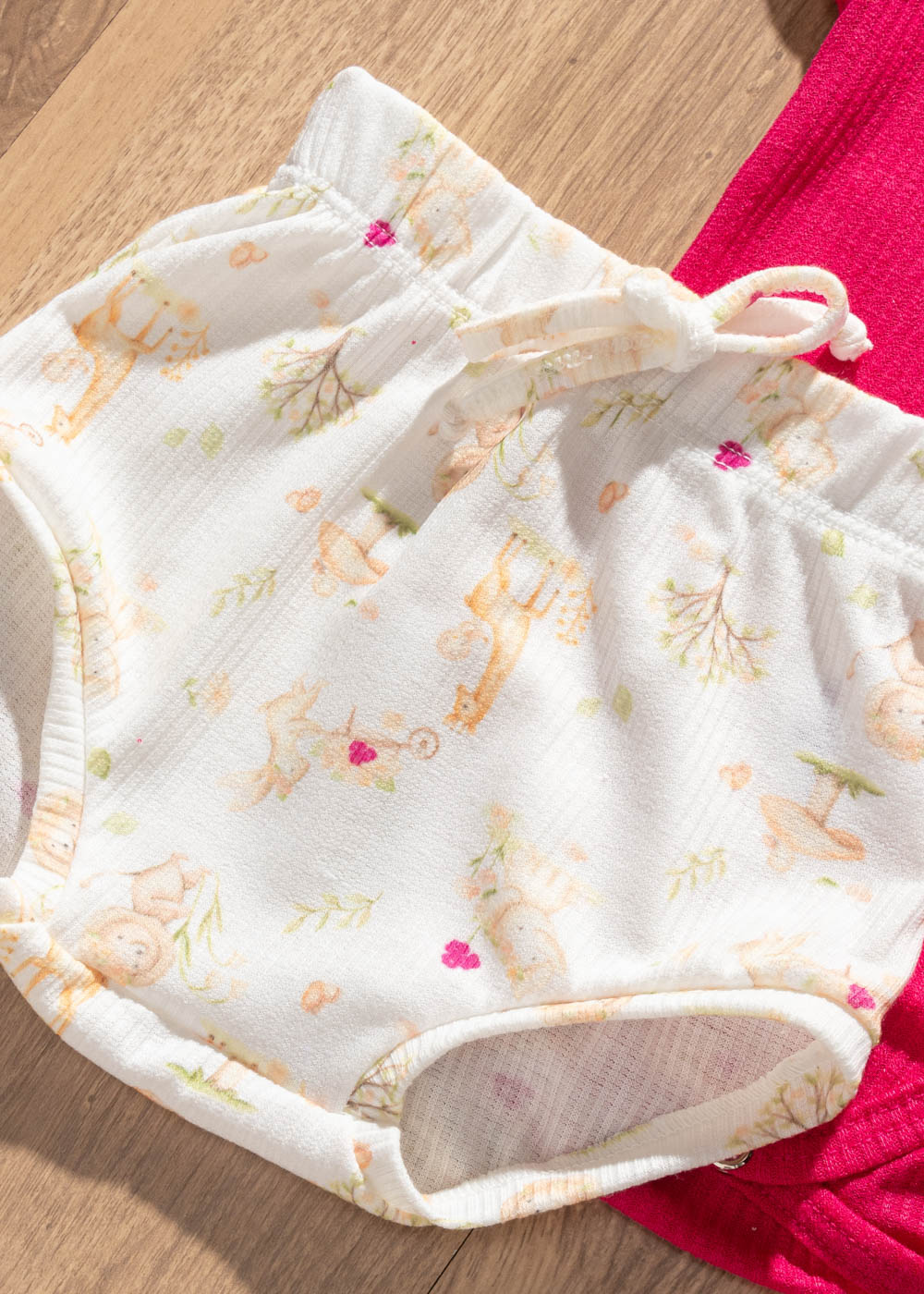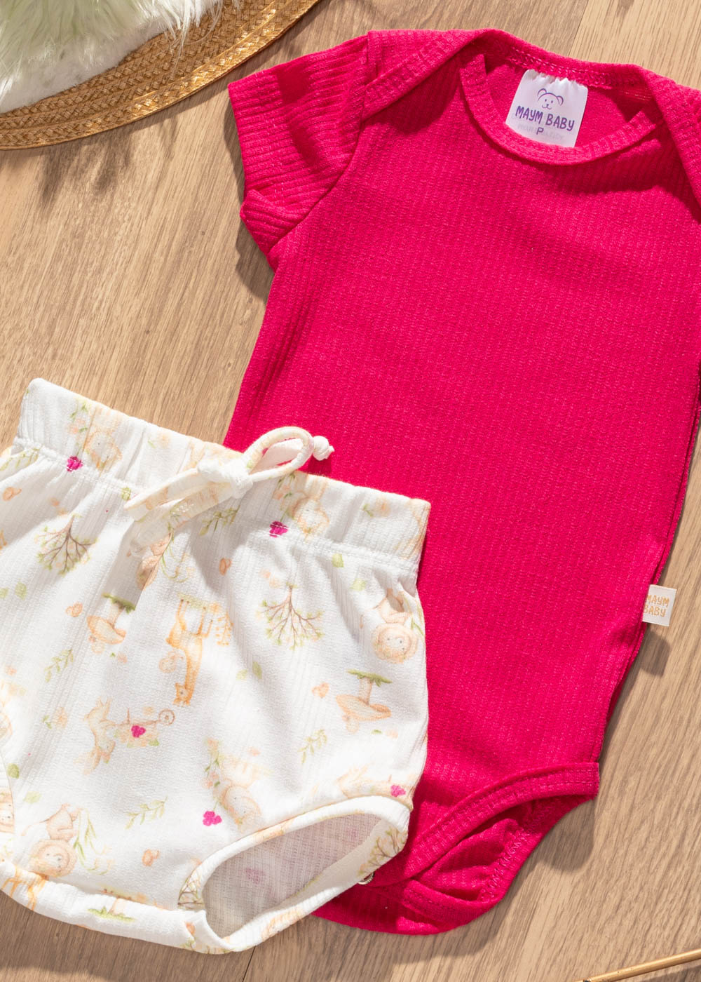 Conjunto Bebê Verão Body Pink e Tapa Fralda Bichinhos. O body é liso pink e possui gola envelope que facilita na hora de vestir e o short é estampa de bichinhos, possui elástico no cós e cordão falso. Um look confortável e lindo para seu baby.