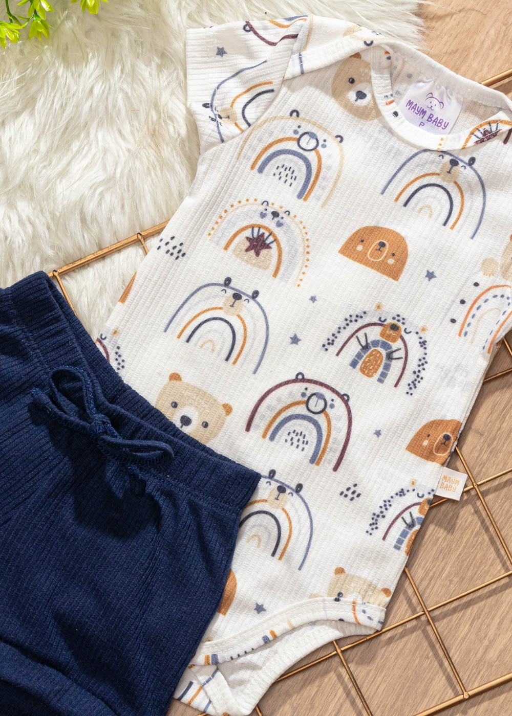 Conjunto Bebê Verão Body Urso e Bermuda Marinho