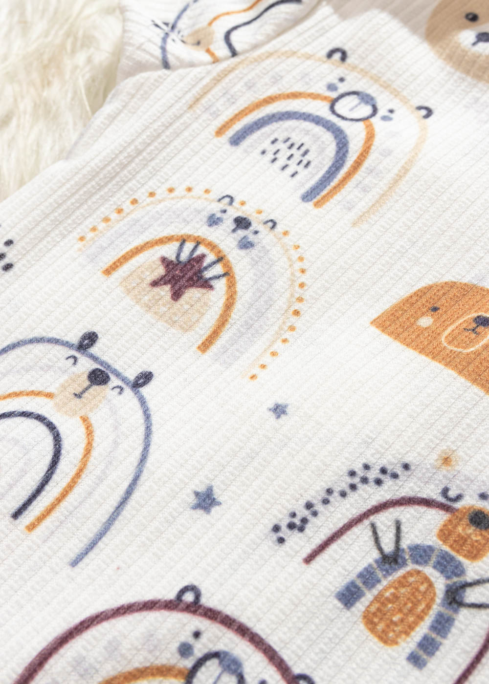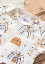 Conjunto Bebê Verão Body Urso e Bermuda Marinho. O body é com estampa de urso e possui gola envelope que facilita na hora de vestir e o short é na cor verde musgo, possui elástico no cós e cordão falso. Um look confortável e lindo para seu baby.