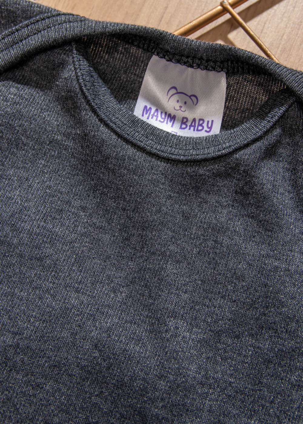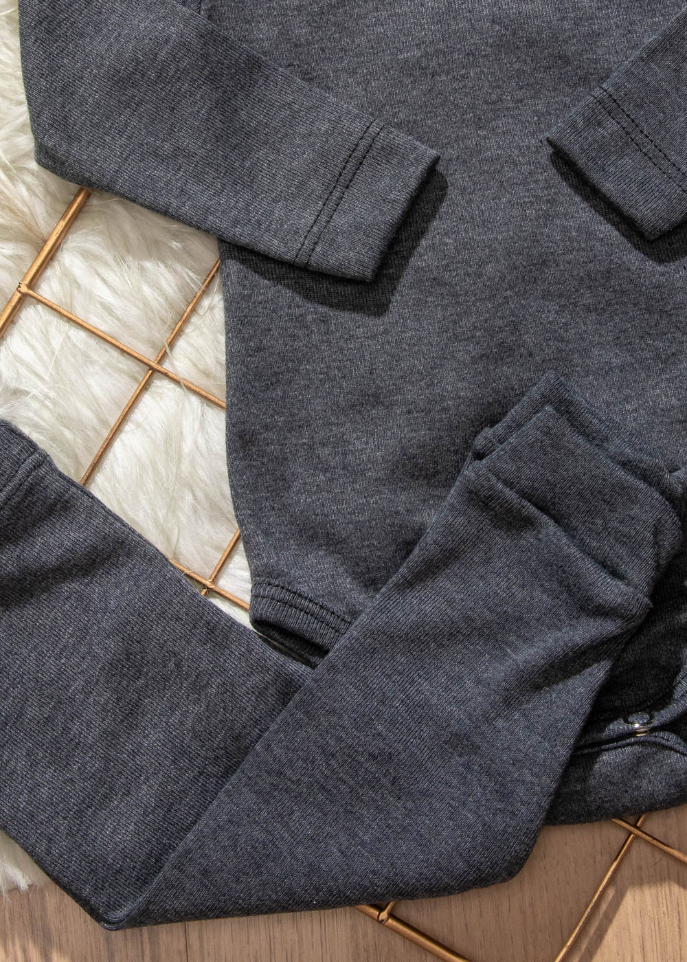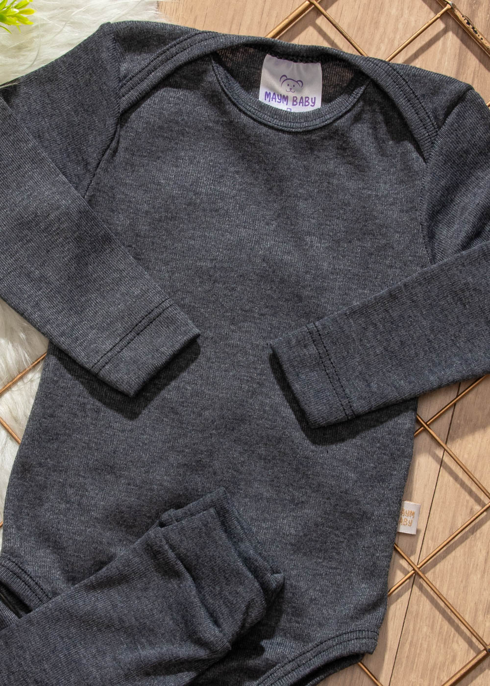 Conjunto Body Bebê Pagão Canelado Longo Chumbo
