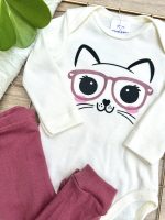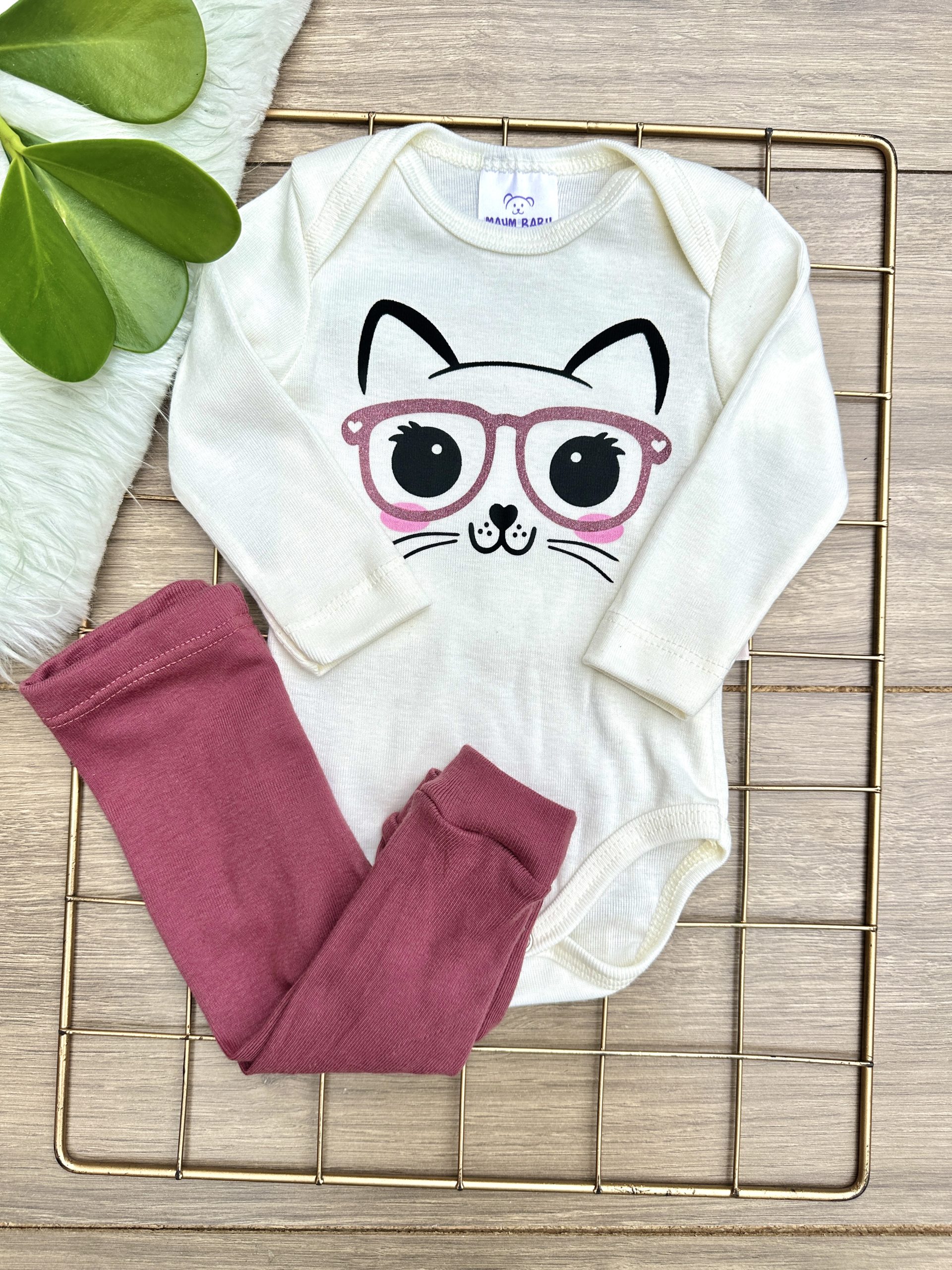 Conjunto Body Bebê Pagão Canelado Longo Gatinha