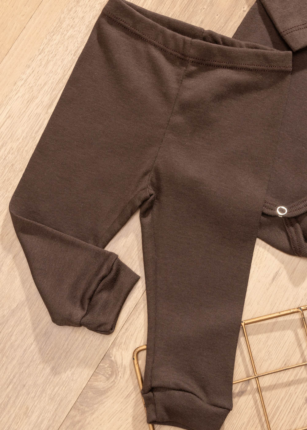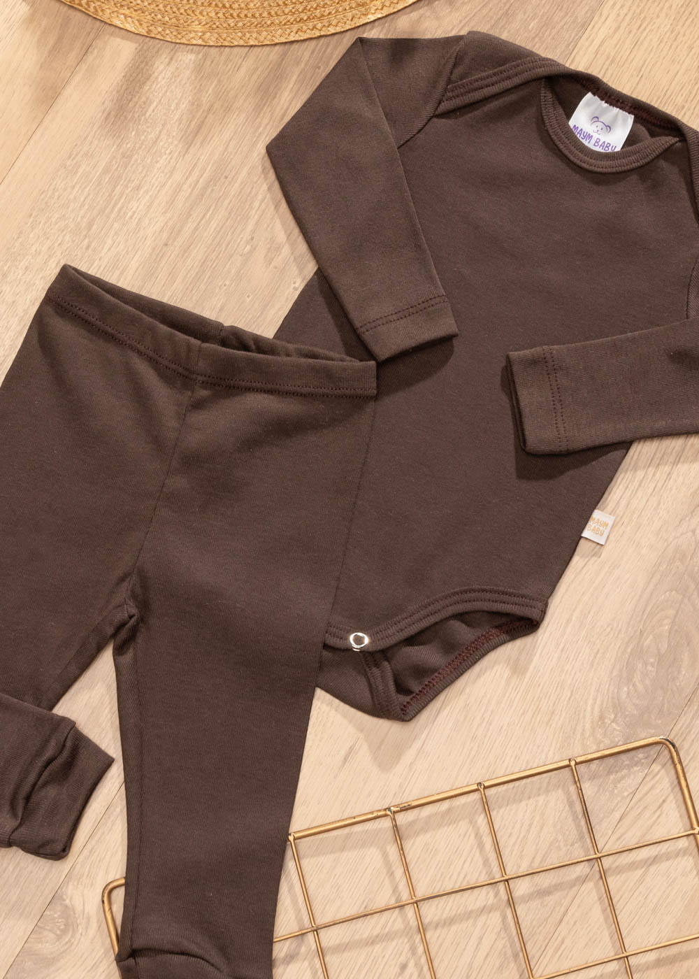 O Conjunto Body Bebê Pagão Canelado Longo Marrom Café, é composto por body mais calça. O body tem gola envelope, oque facilita na hora de vestir, o tecido é super leve e confortável, ideal para a pele do bebe.