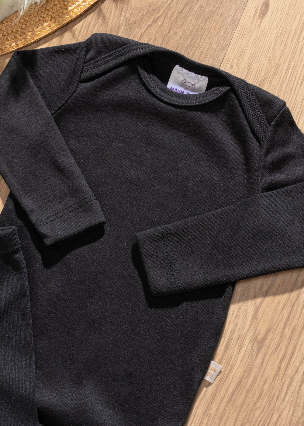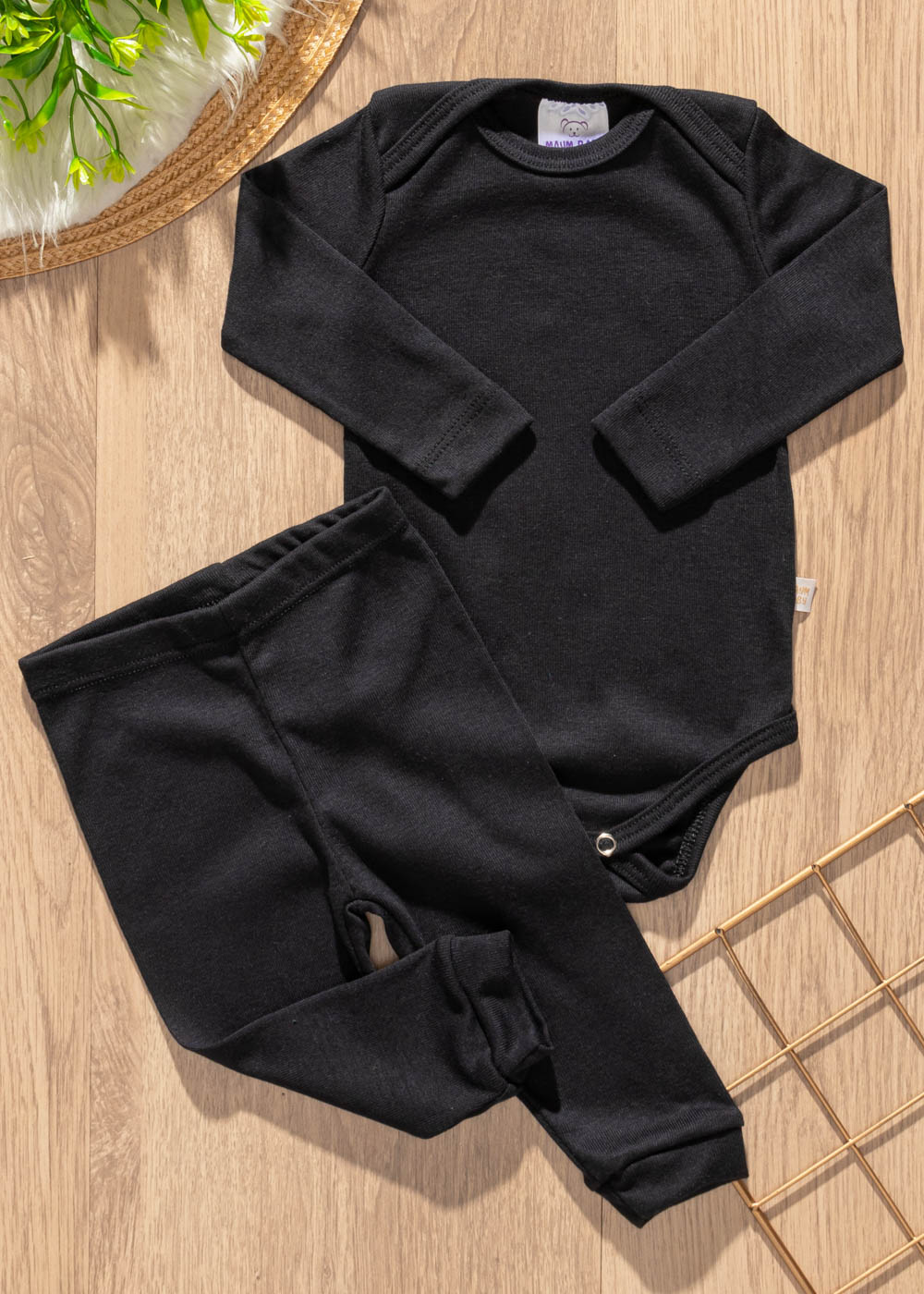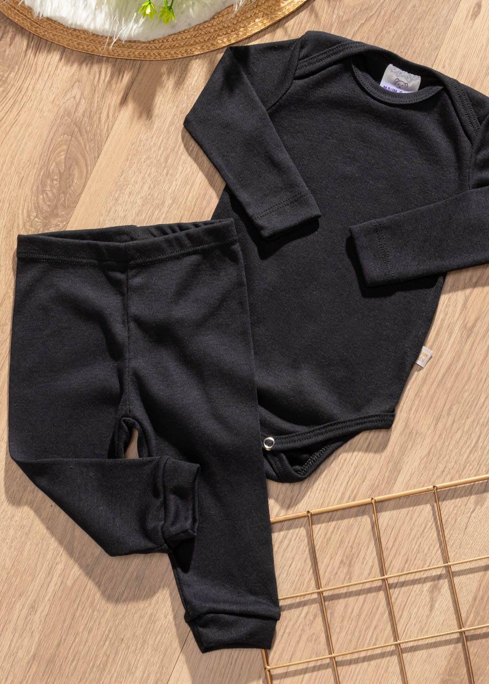 Conjunto Body Bebê Pagão Canelado Longo Preto, é composto por body mais calça. O body tem gola envelope, oque facilita na hora de vestir, o tecido é super leve e confortável, ideal para a pele do bebe.