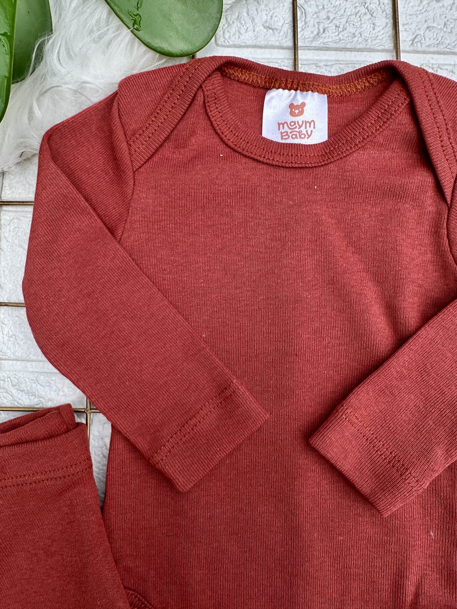 Conjunto Body Bebê Pagão Canelado Longo Telha