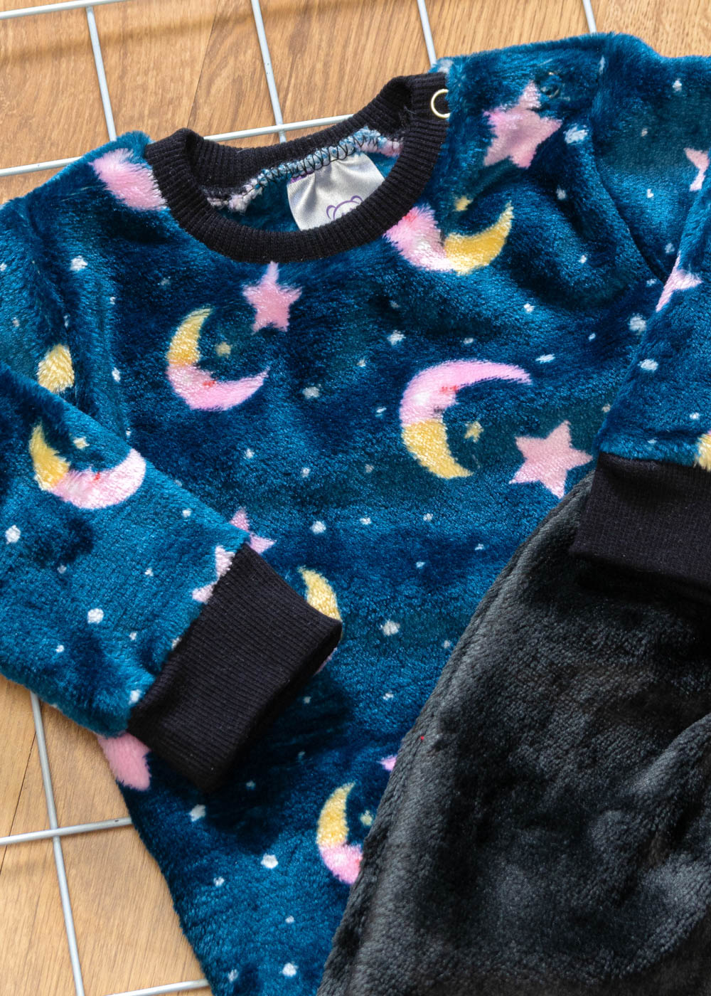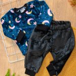 O Conjunto Bebê Inverno Feminino em Fleece Lua é composto por uma Blusa estampada e calça lisa preta  em tecido fleece, super quentinho por dentro e por fora. Formando um Look perfeito para os dias mais frios.