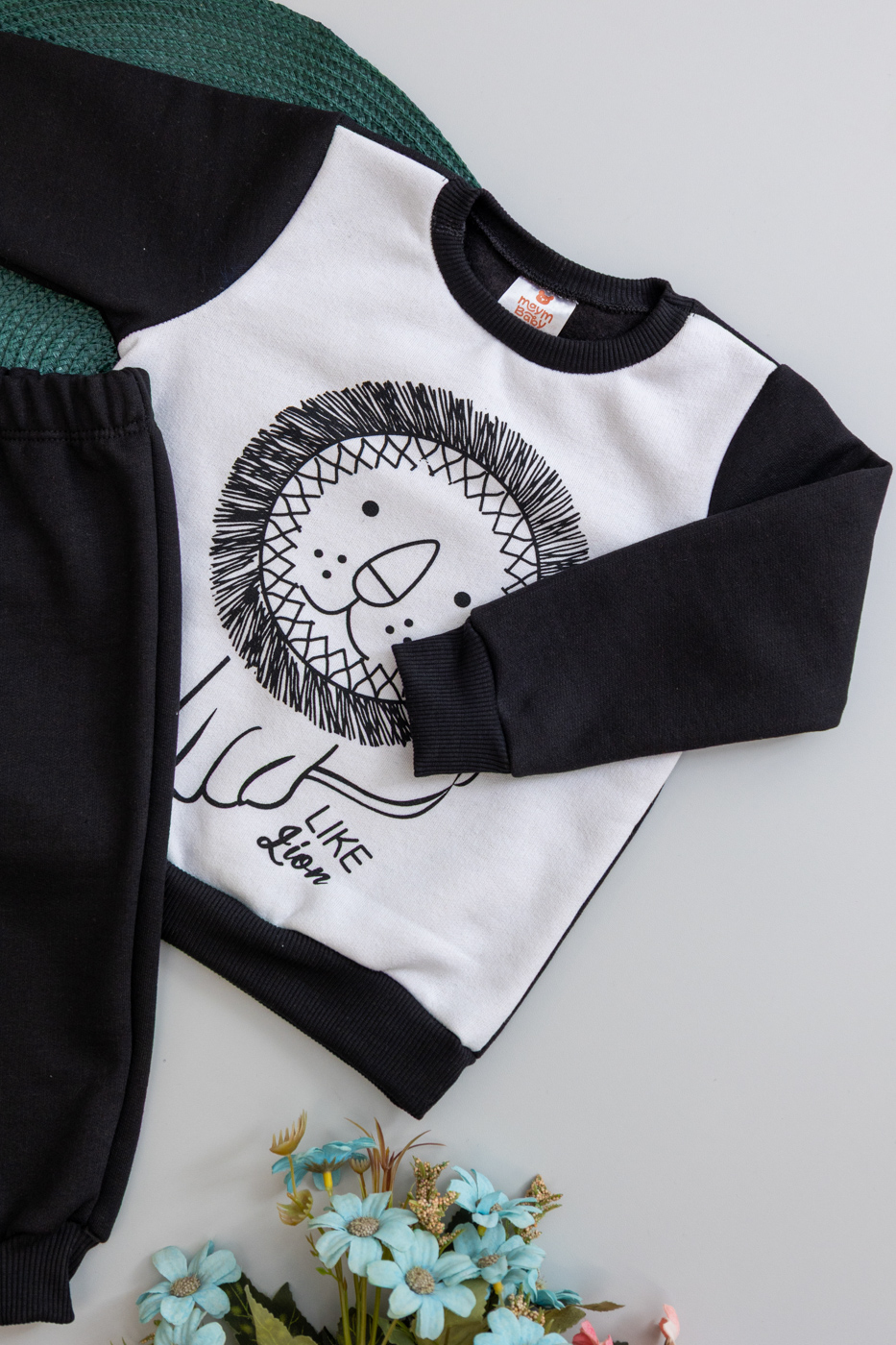 O Conjunto de Bebê em Moletom Peluciado Preto Leão é super quentinho por dentro. O tecido é moletom peluciado, dando um charme todo especial no look dos pequenos. A combinação perfeita para seu Bebê ficar lindo e super aquecido nos dias frios mamãe.