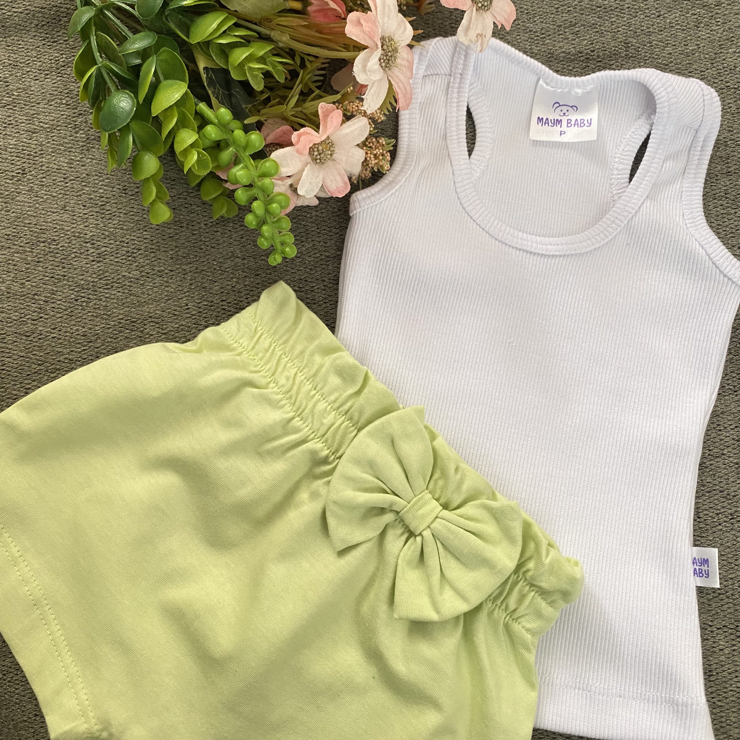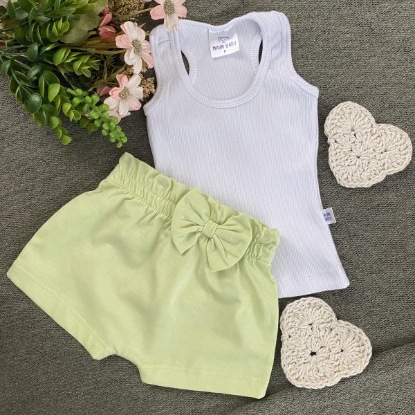 Conjunto lindo e super confortável, a regata é em tecido canelado, e o shorts é em malha com detalhe de laço, super confortável e veste muito bem.