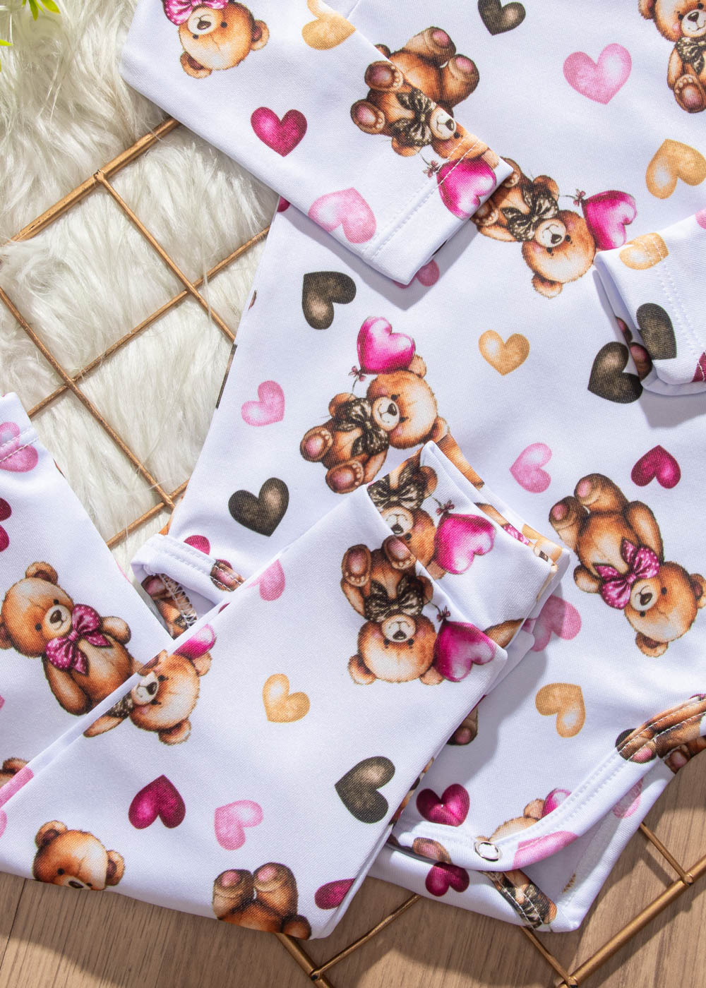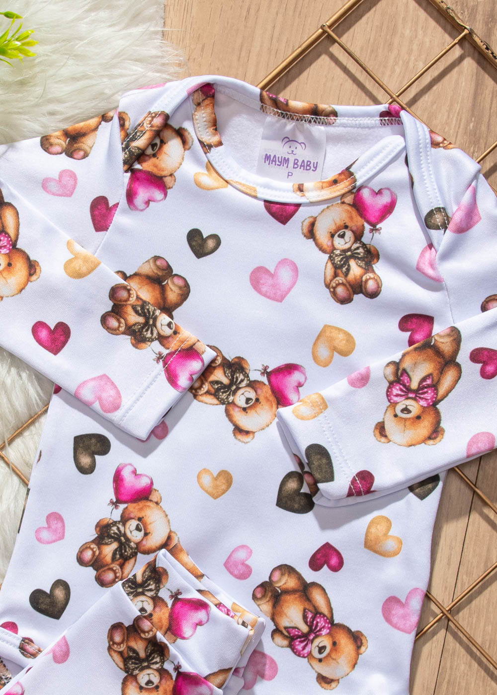 Conjunto Termico Bebê Pagão Longo Urso Sweet Lovely, é leve e confortável. O body tem gola envelope que facilita na hora de vestir.