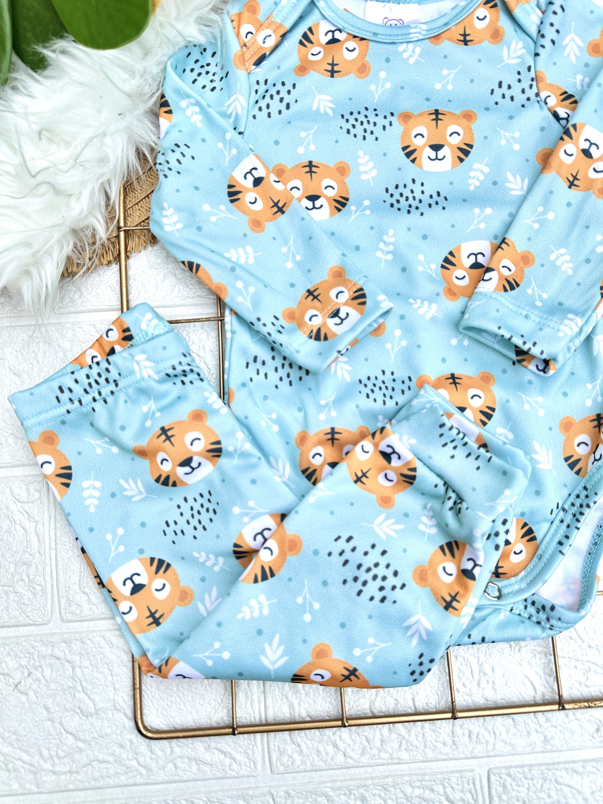 Conjunto Térmico Bebê Pagão Tigre, é confeccionado no tecido termolight, leve e confortável. O body tem gola envelope que facilita na hora de vestir.