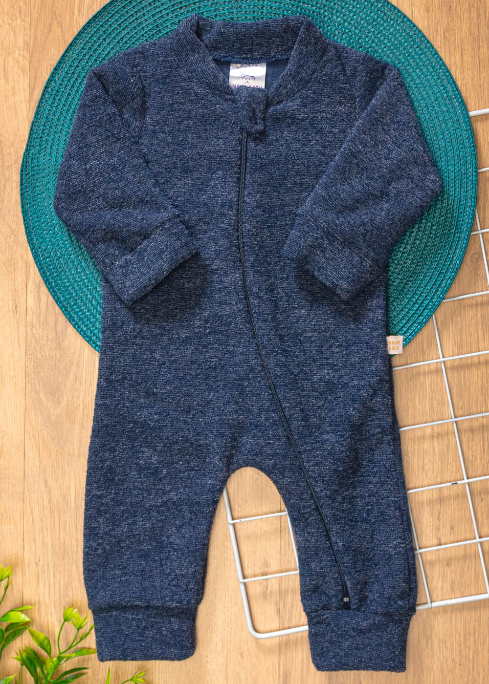 O Macacão Bebê Boucle Azul com zíper, super prático na hora de vestir, feito em tecido boucle, muito confortável, com o toque macio e super quentinho, a peça perfeita pra deixar sua baby ainda mais lindo. O macacão tem proteção interna no zíper.