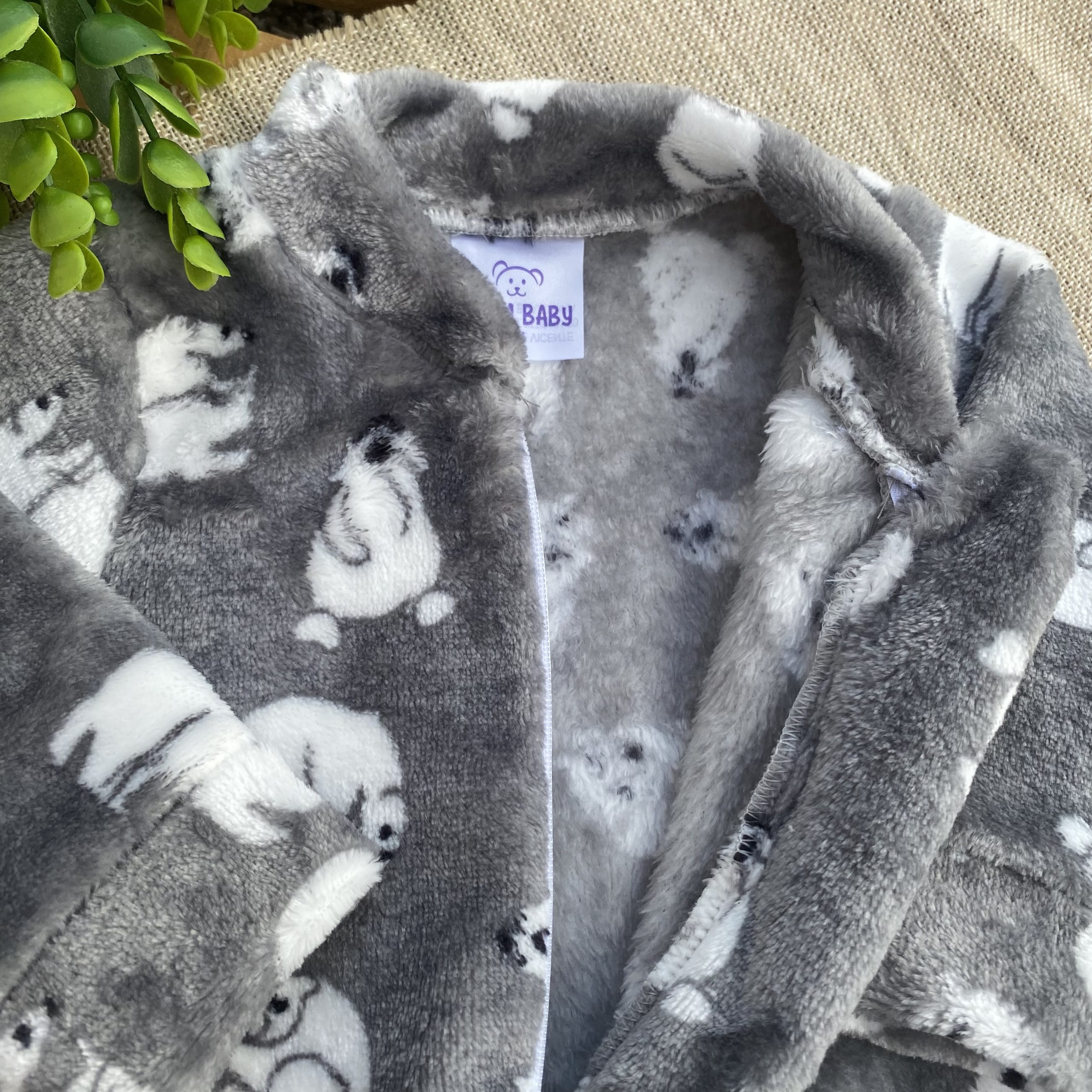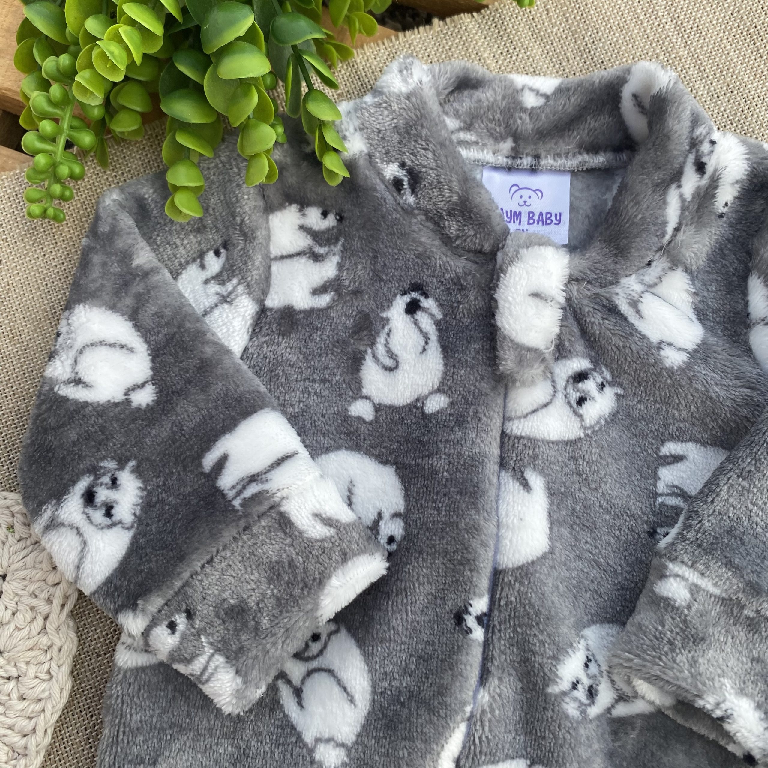 Macacão Bebe Inverno em Fleece Cinza Ursinho