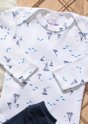 A abertura no meio das pernas facilita a troca para as mamães.