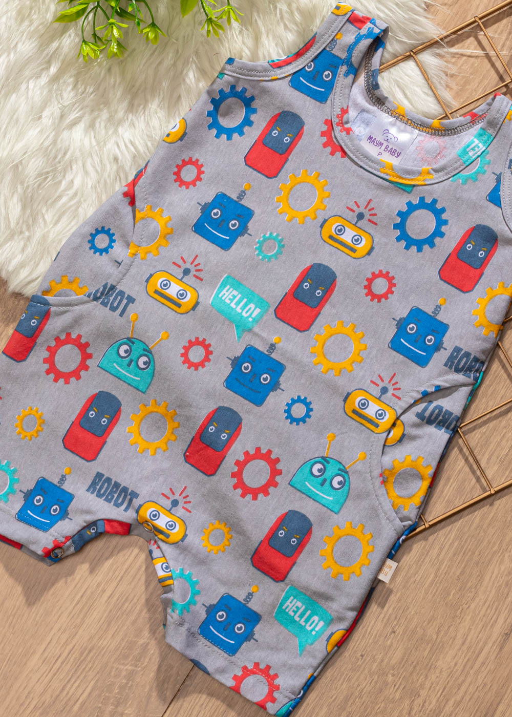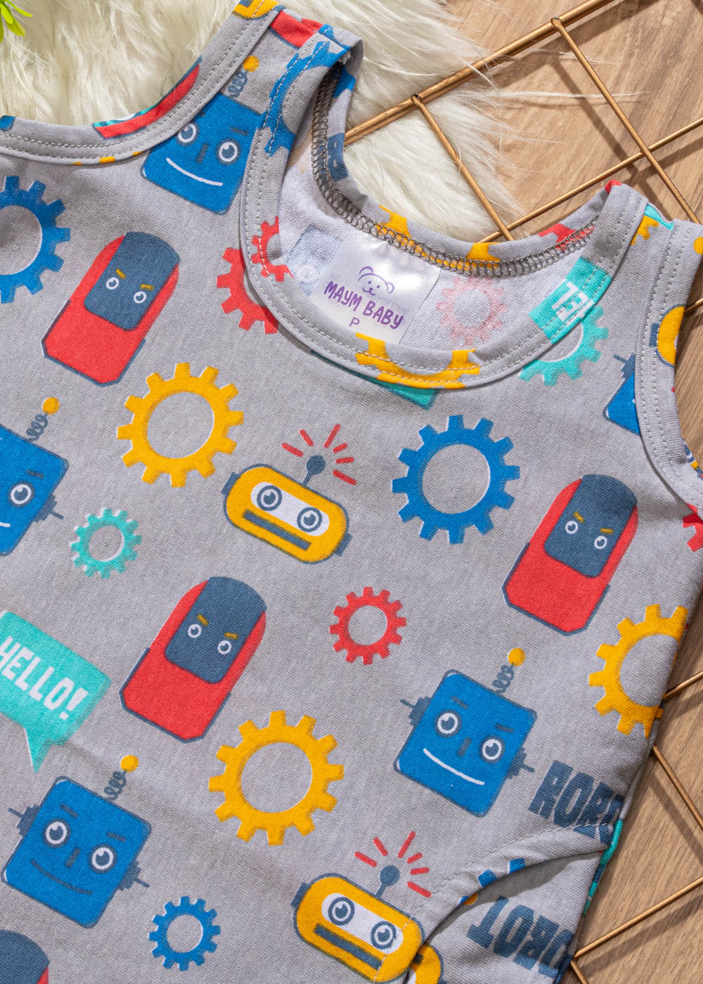 O Macacão Bebê Regata Robô é confeccionado em malha algodão com elastano, com toque super macio e confortável. O macacão contem bolsos na frente, é uma peça super estilosa e fresquinha para os dias mais quentes, ideal para qualquer ocasião, não pode faltar no guarda roupas do seu bebê, é facil de fazer combinações com calçados e acessórios para os babys.