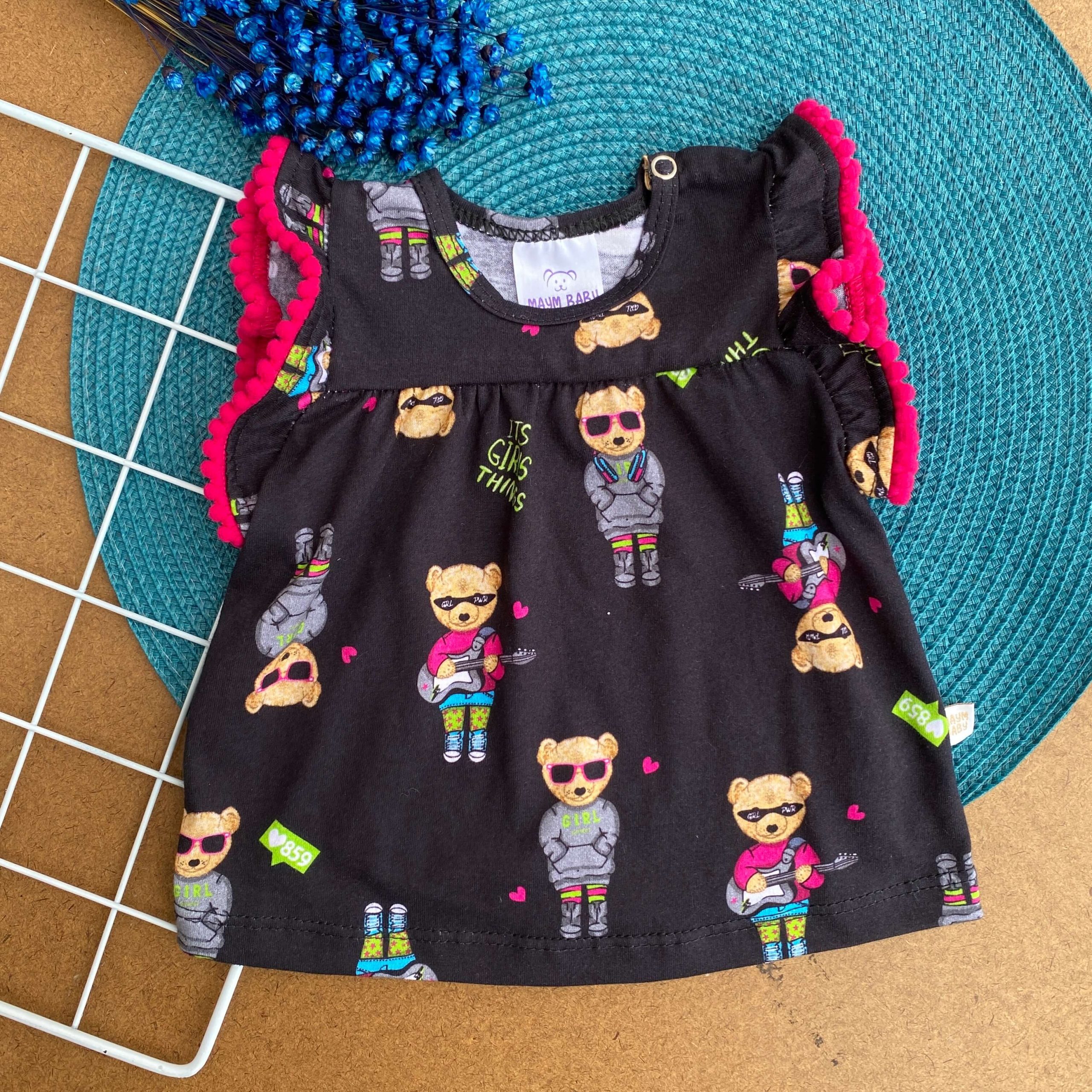 Regata de Bebê Pompom Ursinho, é confeccionada em malha 100% algodão, tecido super confortável e fresquinho. O modelo possui pompom nas mangas e estampa digital. A regata possui botões na gola que facilita na hora de vestir e fica lindo.
