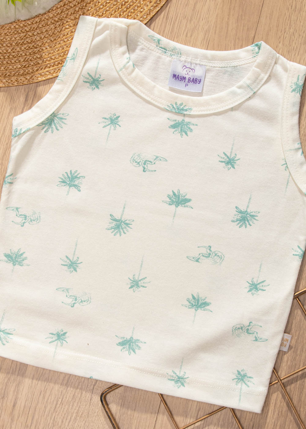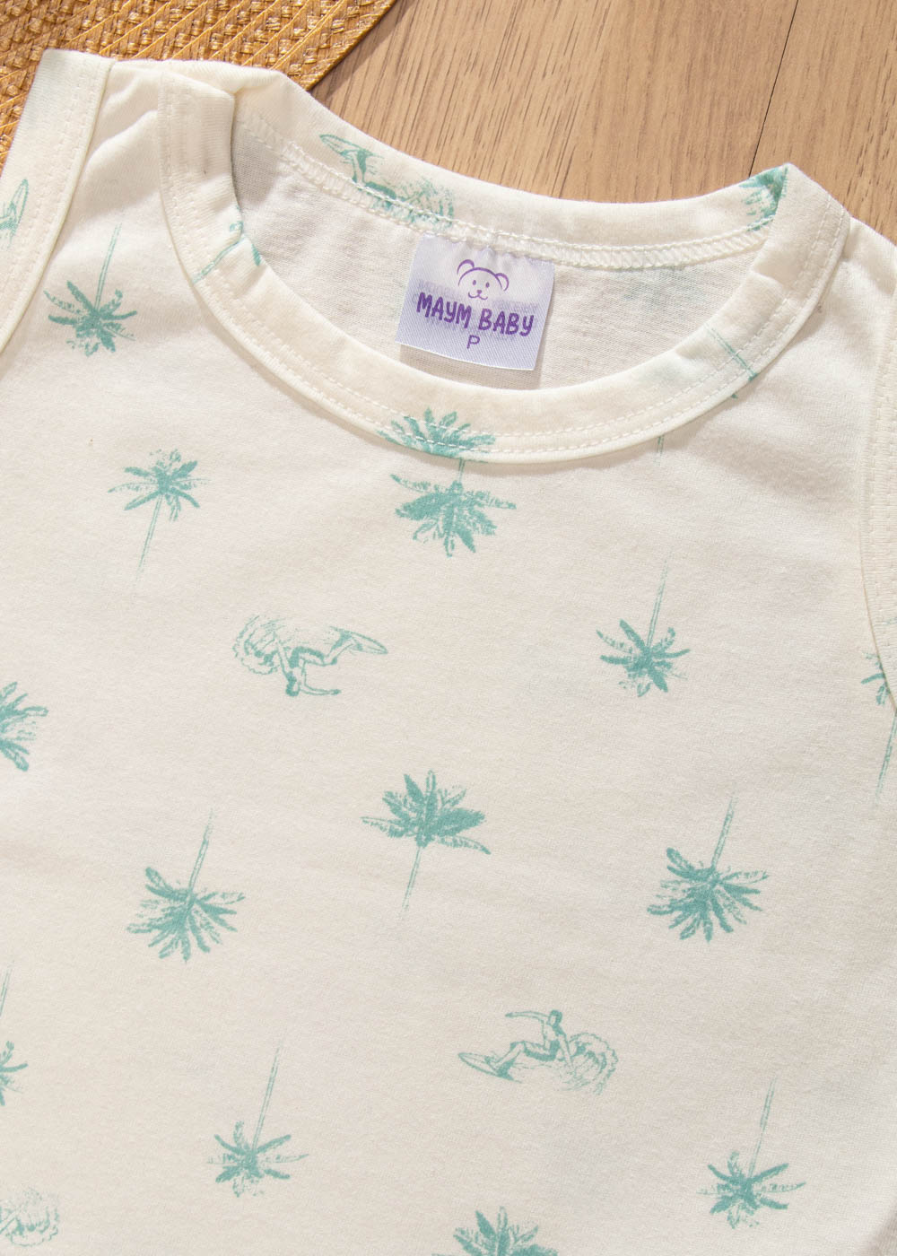 Regata Infantil em Malha Branca com Estampa Coqueiros é confeccionada em 100% algodão, a peça é fácil de vestir, super fresquinha e confortável. Ótima opção para o dia a dia e um look lindo.