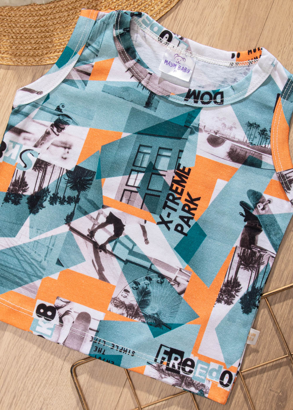 Regata Infantil em Malha com Estampa Skate é confeccionada em 100% algodão, a peça é fácil de vestir, super fresquinha e confortável. Ótima opção para o dia a dia e um look lindo.