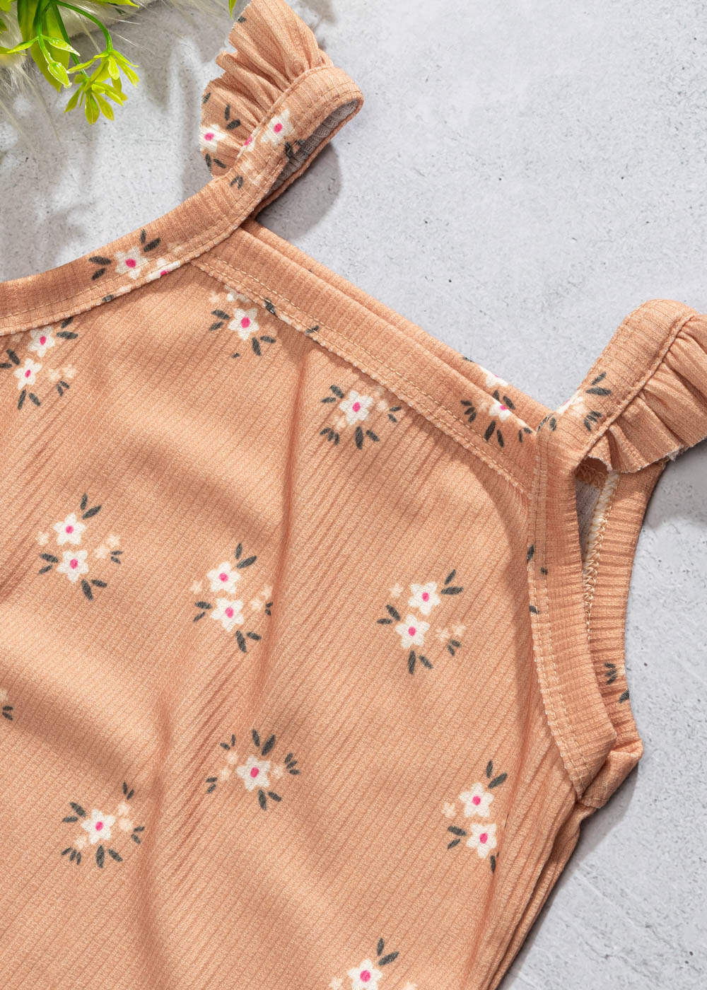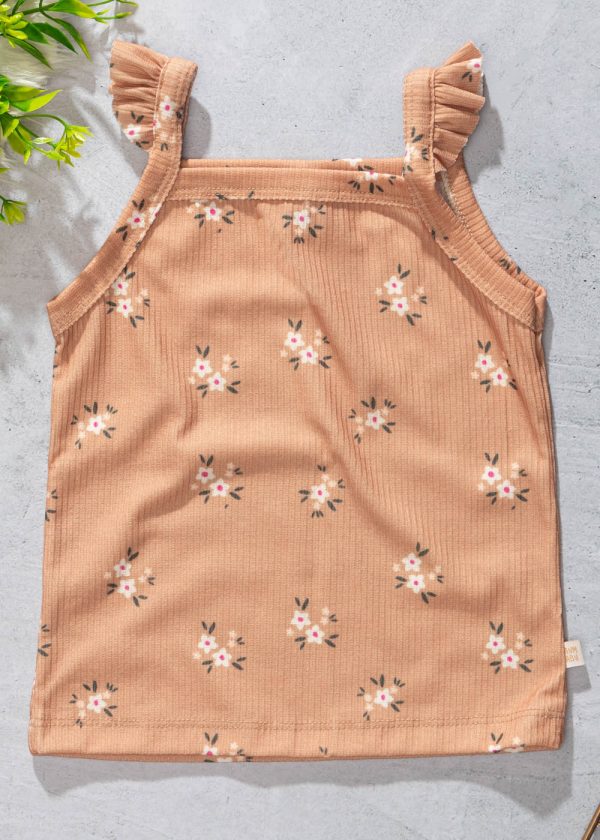 Regata Infantil Feminina Alça com Babado Flores Marrom