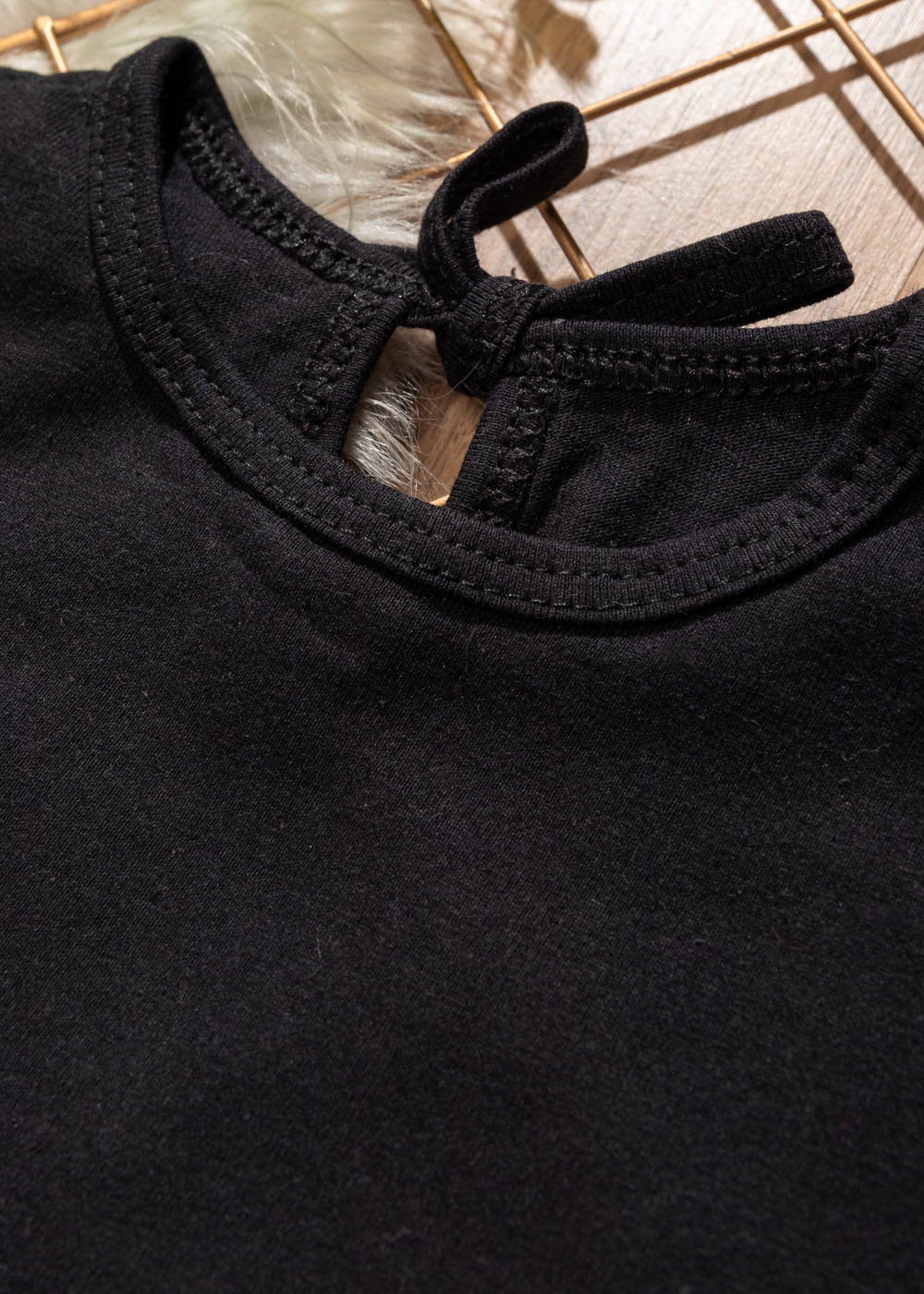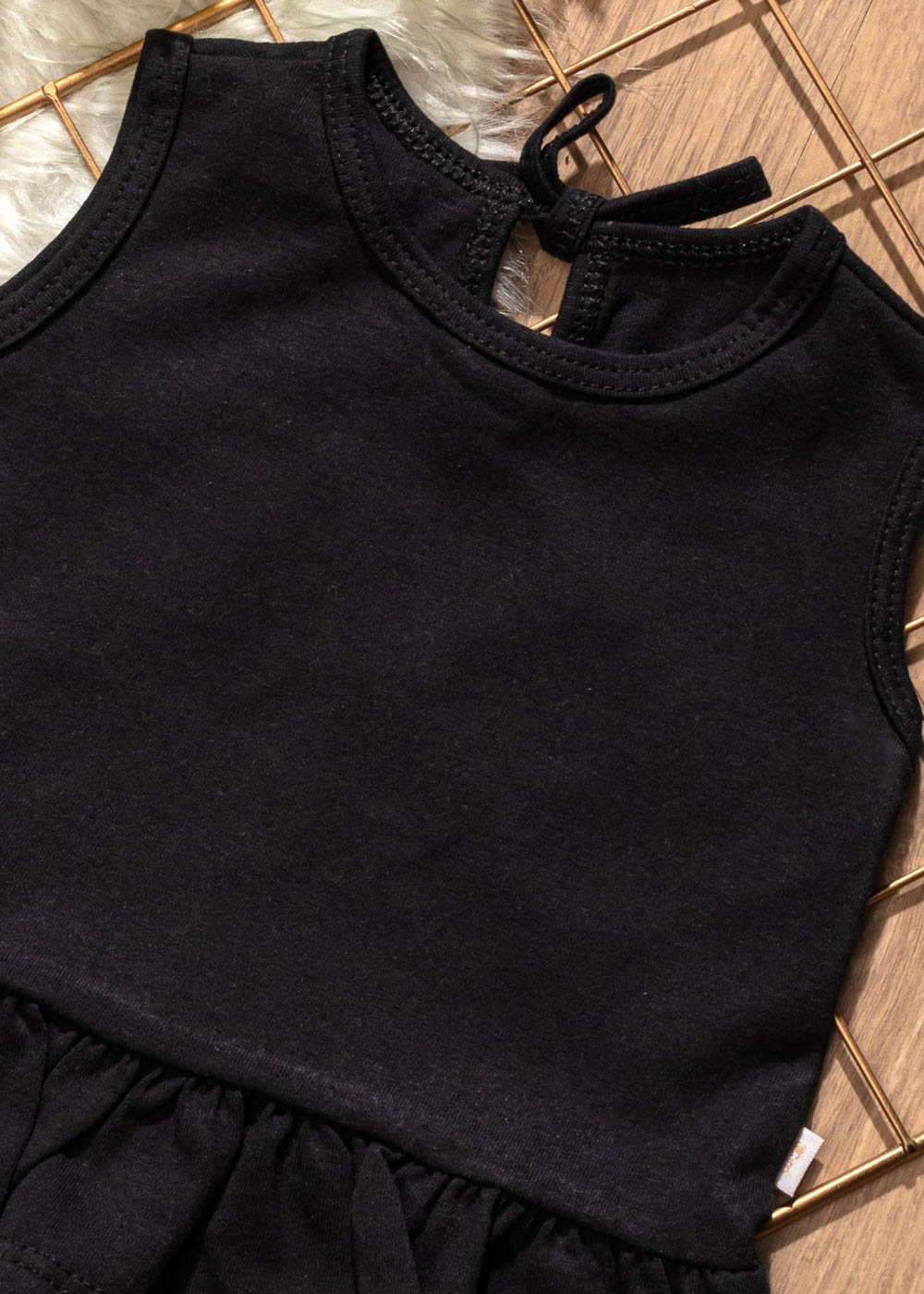 A Regata Infantil Feminina com Babado é confeccionada em malha 100% algodão, tecido super confortável e fresquinho. O modelo possui um babado na parte de baixo que da um charme na peça e na gola tem acabamento para amarrar atrás do pescoço, que facilita na hora de vestir e fica lindo.